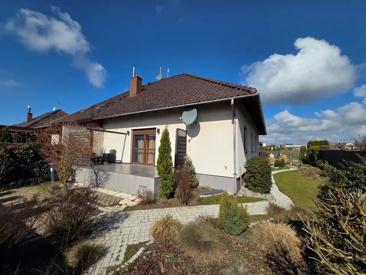 Biuro nieruchomości "Luxus Home" Leszno, oferuje do sprzedaży PARTEROWY DOM BLIŹNIAK, zlokalizowany w Dąbczu, gmina Rydzyna.