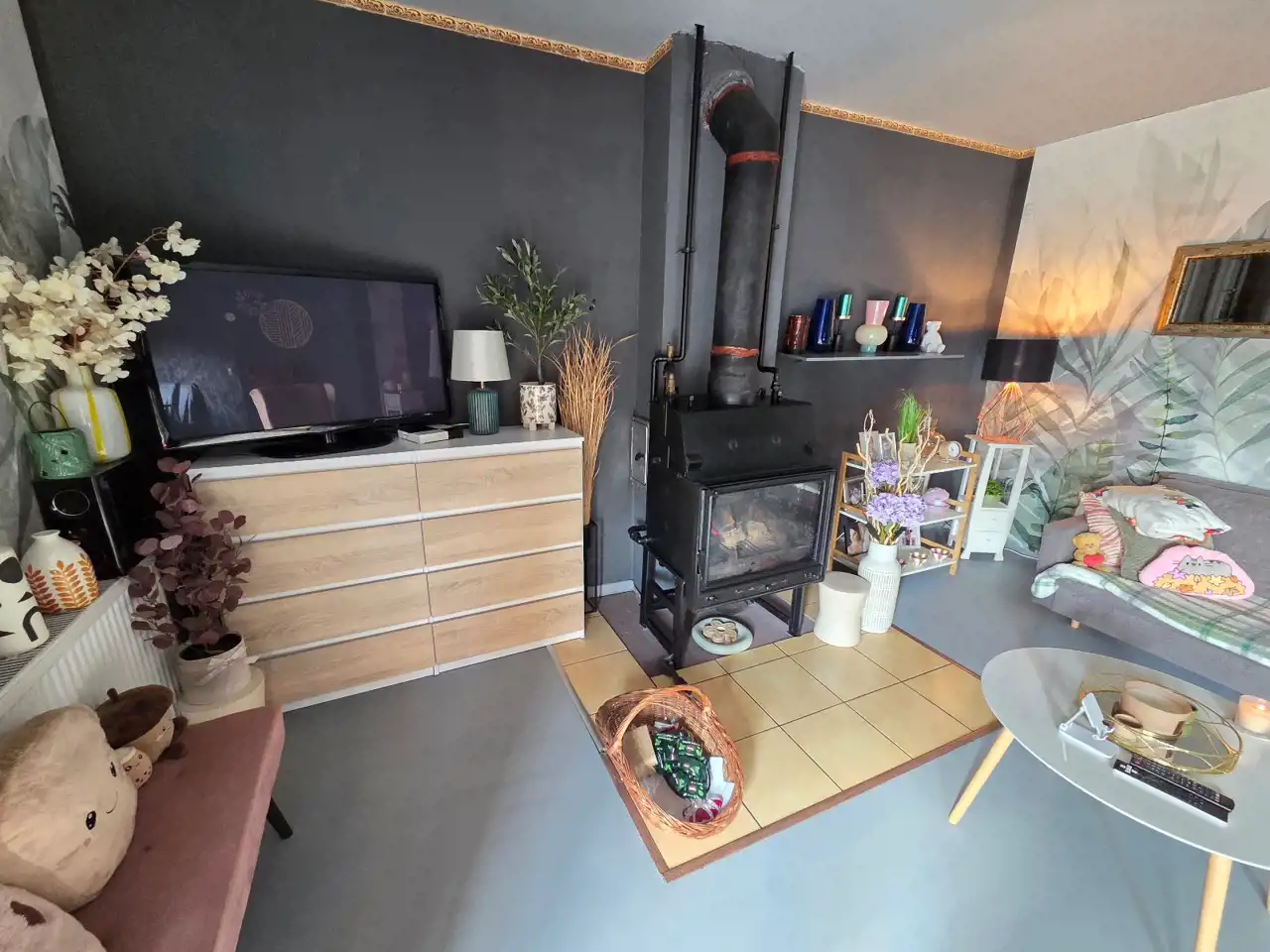 Media: prąd, woda (ciepła z elektrycznego podgrzewacza), kanalizacja, centralne ogrzewanie - kominek z płaszczem wodnym.