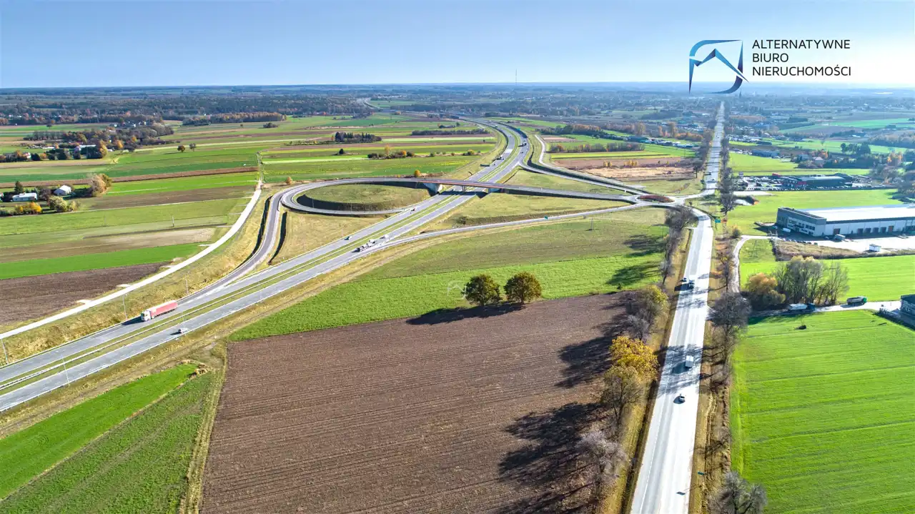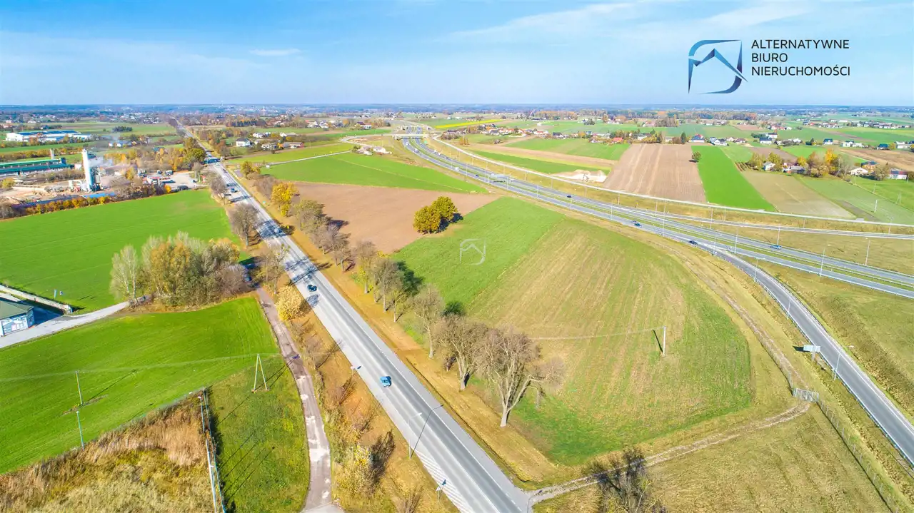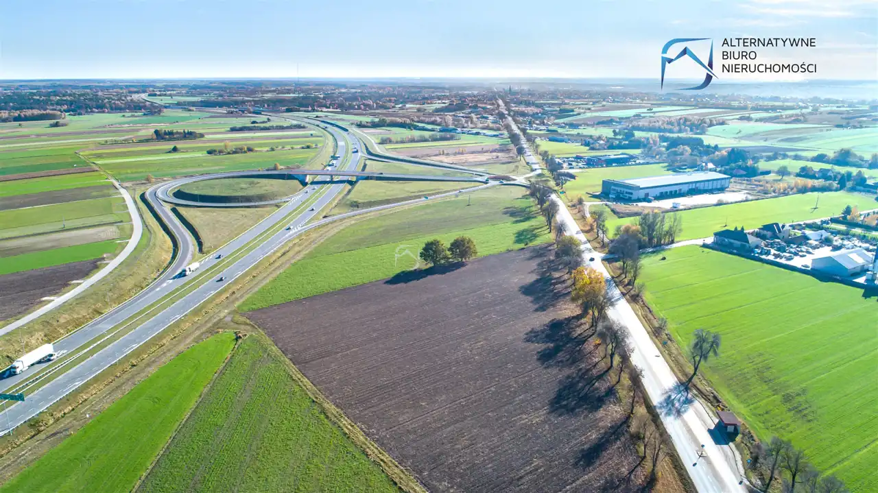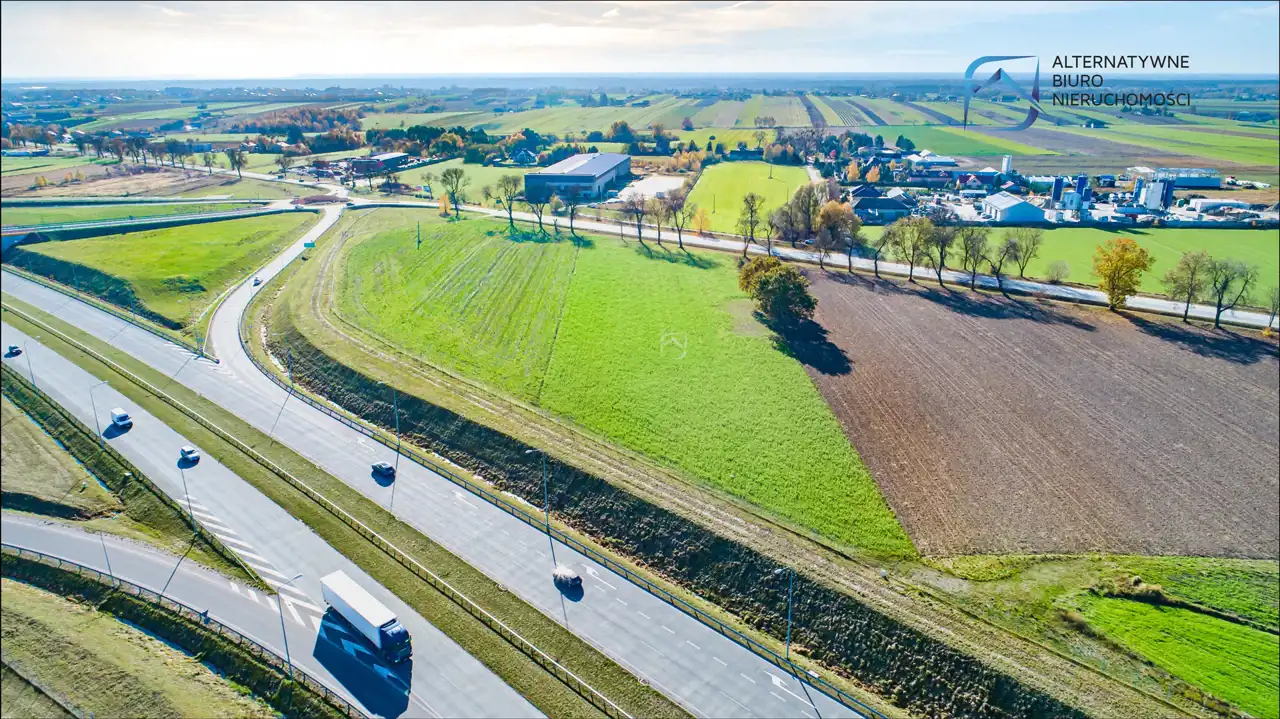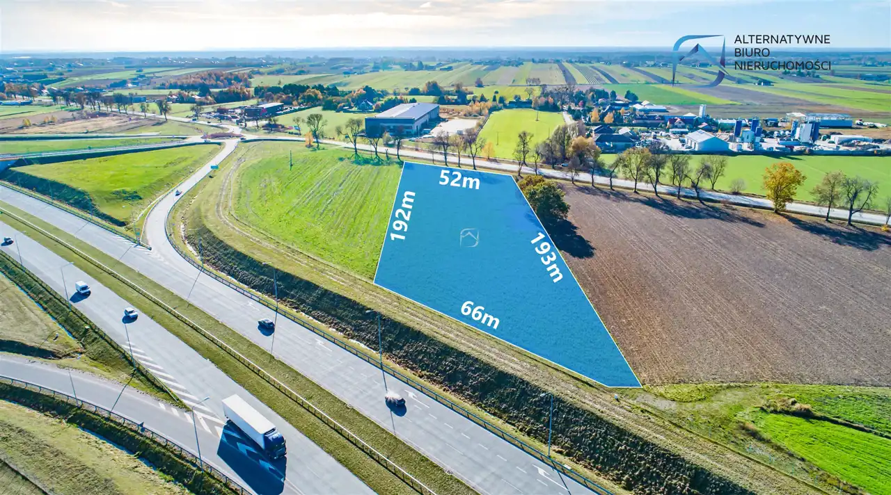 Całkowita powierzchnia działki wynosi 1,03 ha, teren jest płaski i graniczy bezpośrednio z drogą wojewódzką. gdzie nie obowiązują ograniczenia tonażowe. Wymiary działki wynoszą 52m szerokości frontu oraz 196m długości, co jest komfortowe pod kątem lokalizowania wszelkiego rodzaju budynków magazynowych.