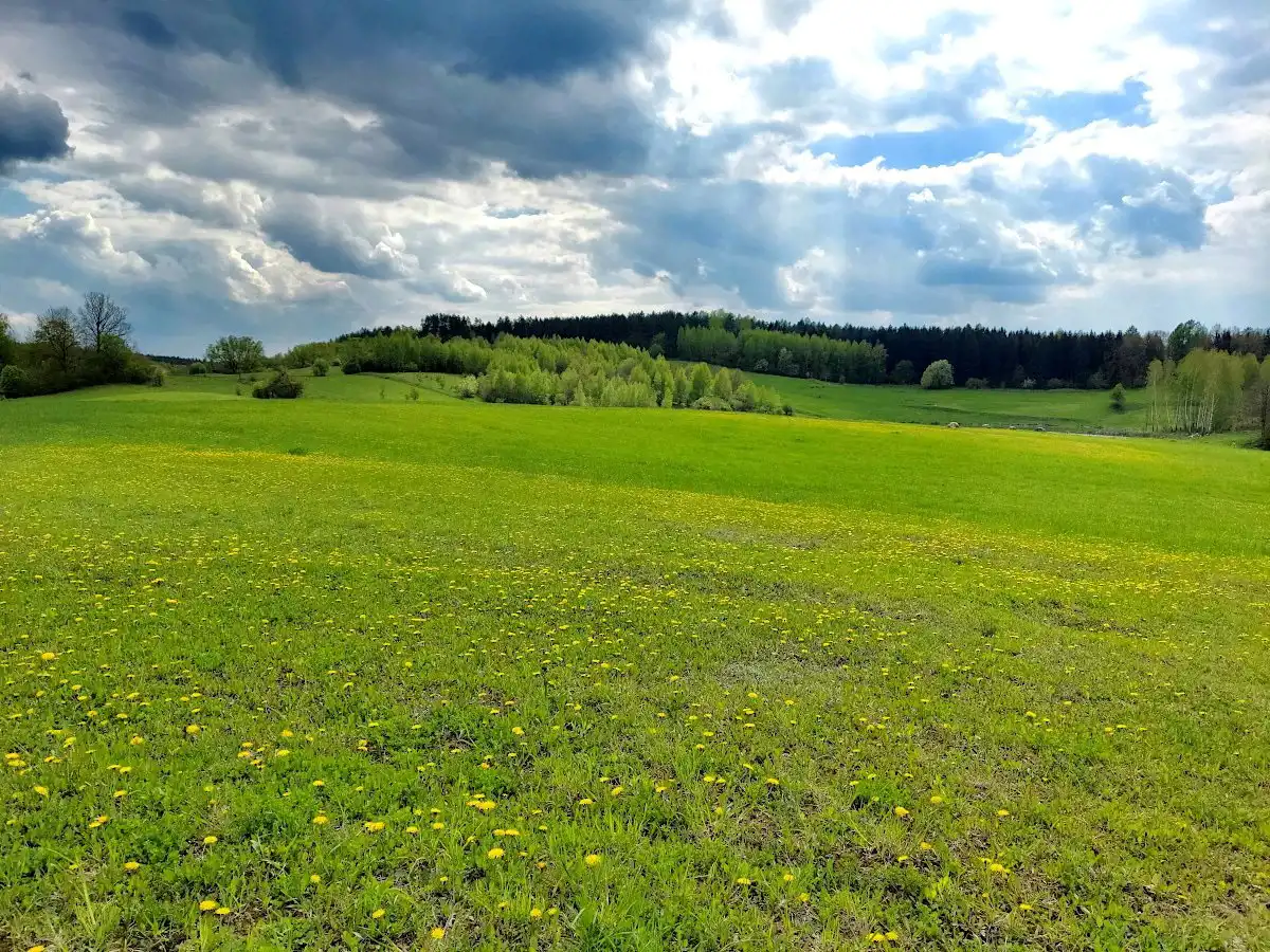 Działki z ładnym widokiem na okolicę i bardzo dobrym dojazdem, wśród pól i łąk.