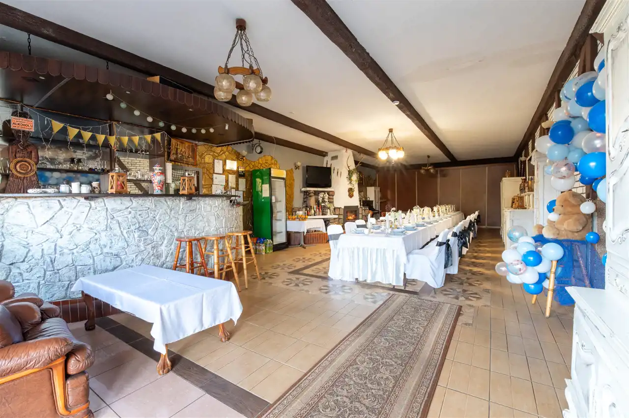 Wybudowany w 2009 roku obiekt zachwyca solidnością konstrukcji z Suporexu, profesjonalnym ociepleniem styropianem (ściany) oraz wełną (dach) jak i nowoczesnym dachem pokrytym blachodachówką, co gwarantuje trwałość i komfort użytkowania. Kompleks obejmuje min. salę restauracyjną, bankietowe, kuchnię, zaplecze, toalety i 7 pokoi hotelowych, oferujących liczne miejsca noclegowe, a w cenę wliczone jest również mieszkanie o powierzchni 94 m² z osobnym wejściem – idealne jako przestrzeń dla właściciela lub dodatkowa oferta dla gości.