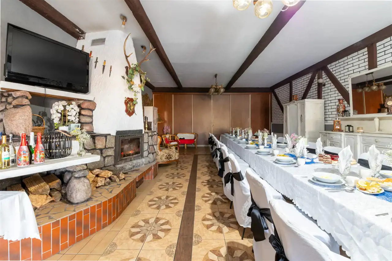 Dodatkowym atutem jest przyległa działka (dodatkowo płatna), na której znajduje się malowniczy staw z pomostem, urokliwa altana oraz drewniany domek górski – idealne zaplecze do relaksu i integracji po intensywnych wydarzeniach. To oferta, która łączy emocjonalną przestrzeń spotkań z ogromnym potencjałem inwestycyjnym – czeka na właściciela, który dostrzeże jej nieograniczone możliwości rozwoju.