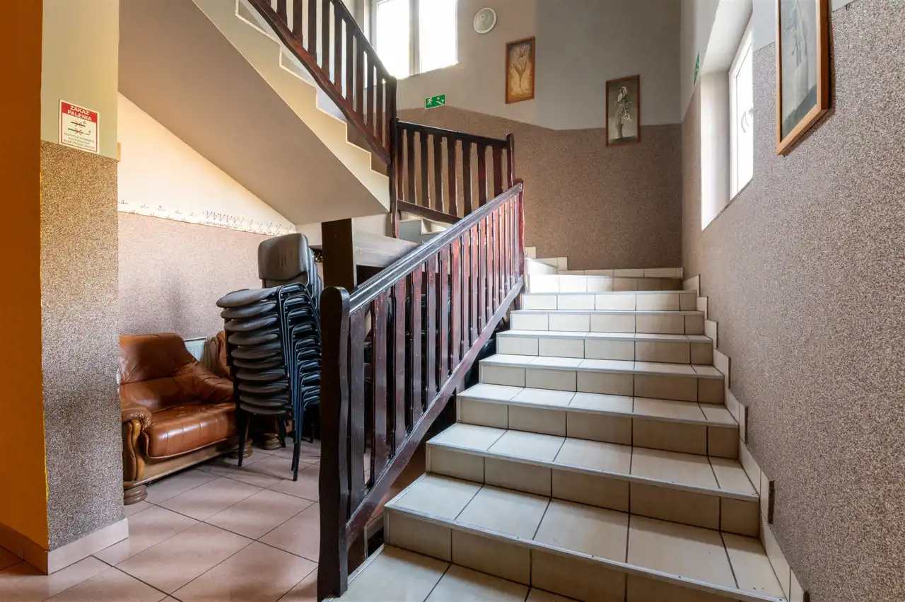 Doskonała infrastruktura – kanalizacja i wodociągi gminne, liczne jednostki klimatyzacyjne oraz system ogrzewania piecem na ekogroszek (dodatkowo kominek w restauracji) – zapewniają niezbędny komfort i funkcjonalność. Choć obiekt wymaga delikatnego odświeżenia, to właśnie ta cecha otwiera przed ambitnym inwestorem możliwość nadania mu nowego, indywidualnego charakteru, jednocześnie zachowując solidne fundamenty.