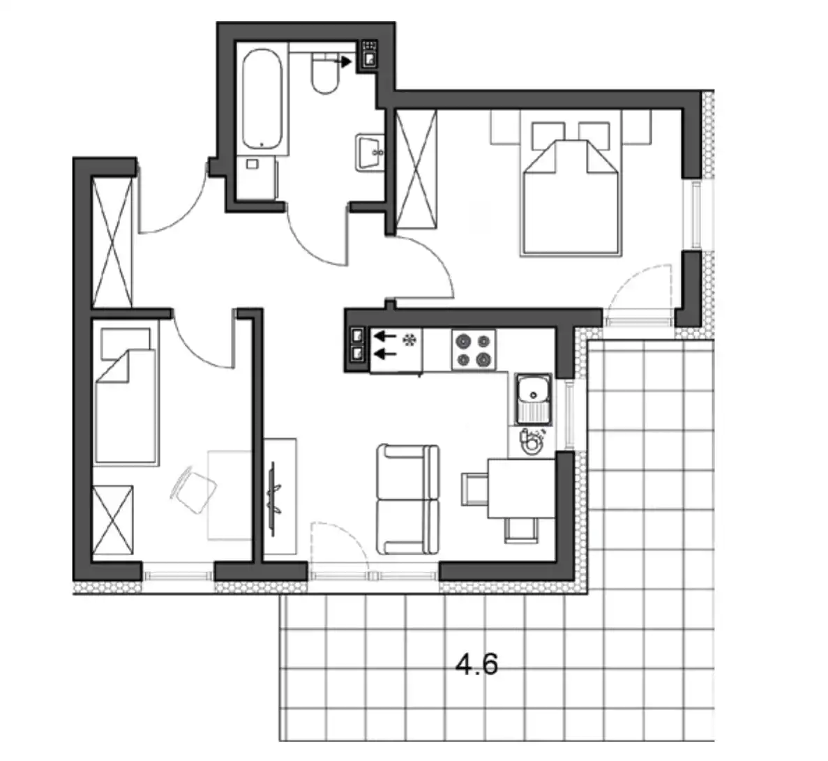 - Charakterystyka mieszkania 41.54 m2, 3 pokoje