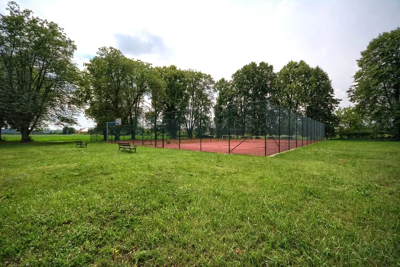 The plot also features well-maintained tennis courts, a basketball court, a children's playground, a grill shelter with space for an outdoor tent. At the back of the plot, there is a photovoltaic farm that minimizes electricity costs.