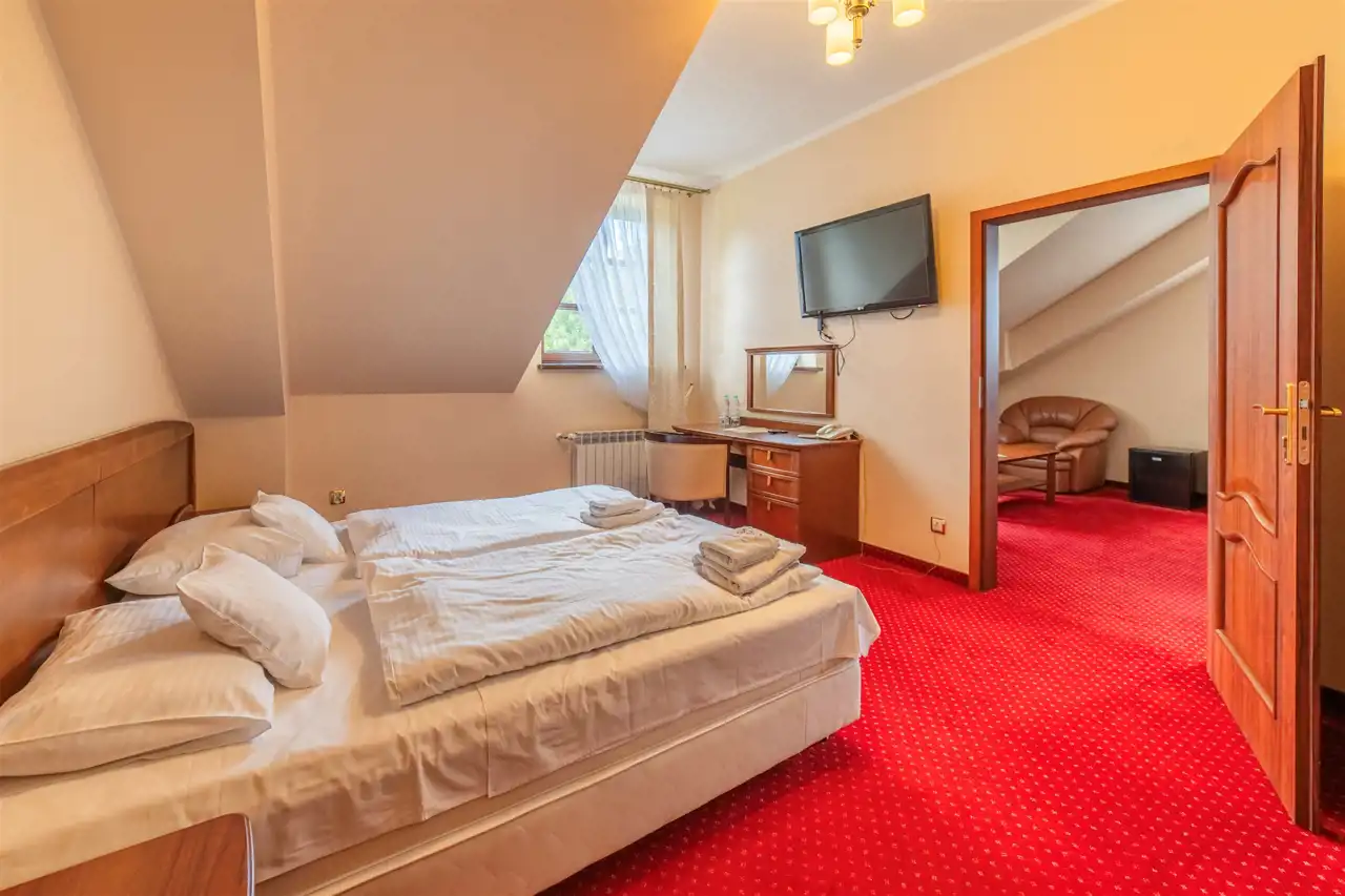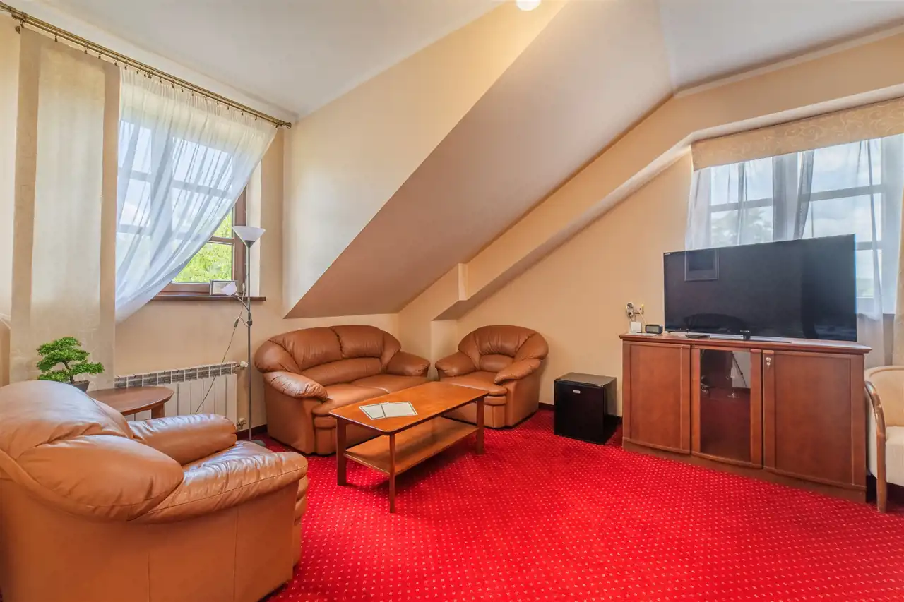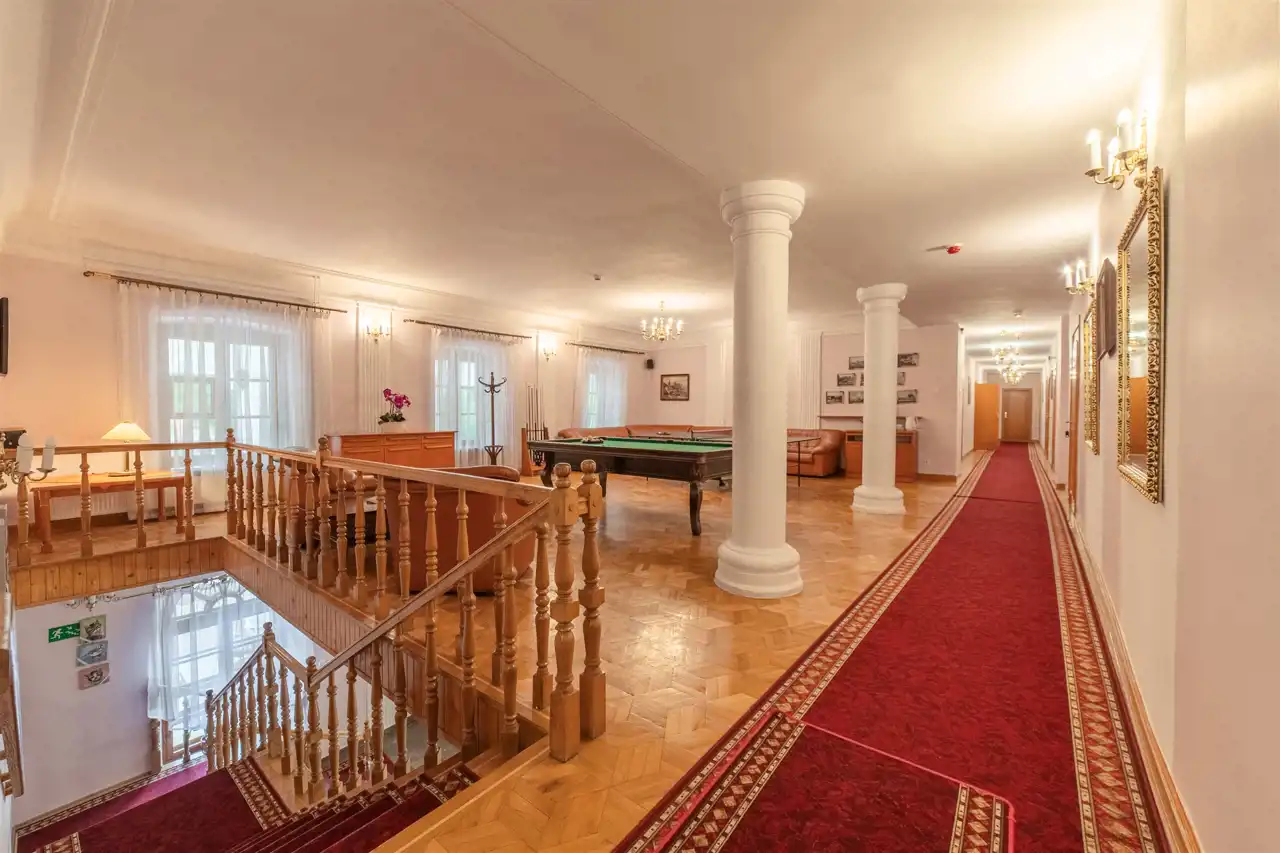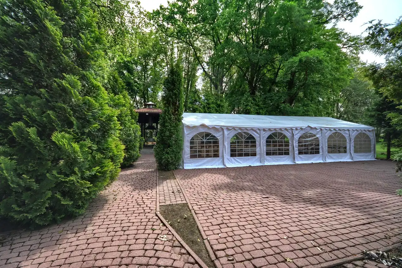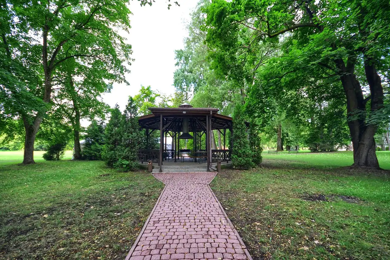 The entire complex is situated on a representative and landscaped plot of 105,400 m² (10.54 ha) with mature trees, shrubs, and walking alleys. It is an ideal place for relaxation and an escape from the hustle and bustle of the city. The property has history and great potential for a new owner. It is currently operating as a hotel and venue for various events.
