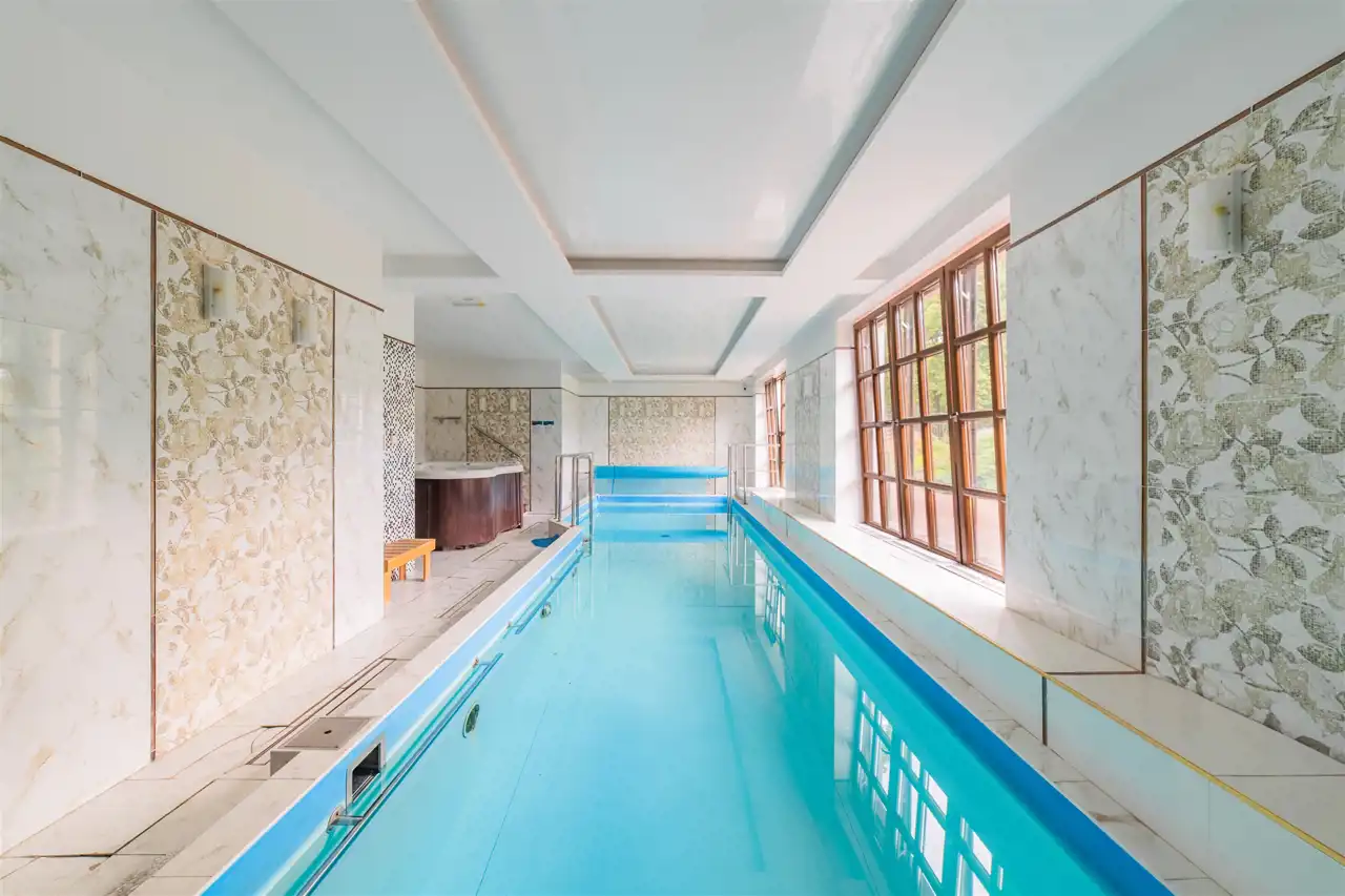 Basement: leisure area with swimming pool, jacuzzi, sauna, cosmetic and relaxation rooms, restrooms, changing rooms, corridors