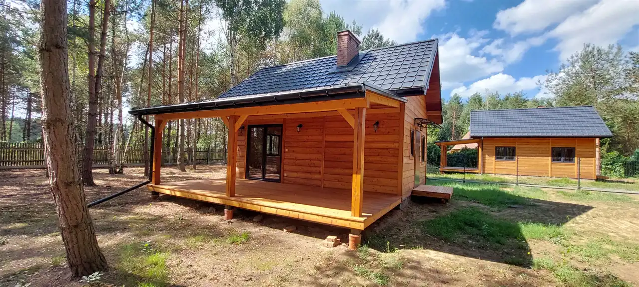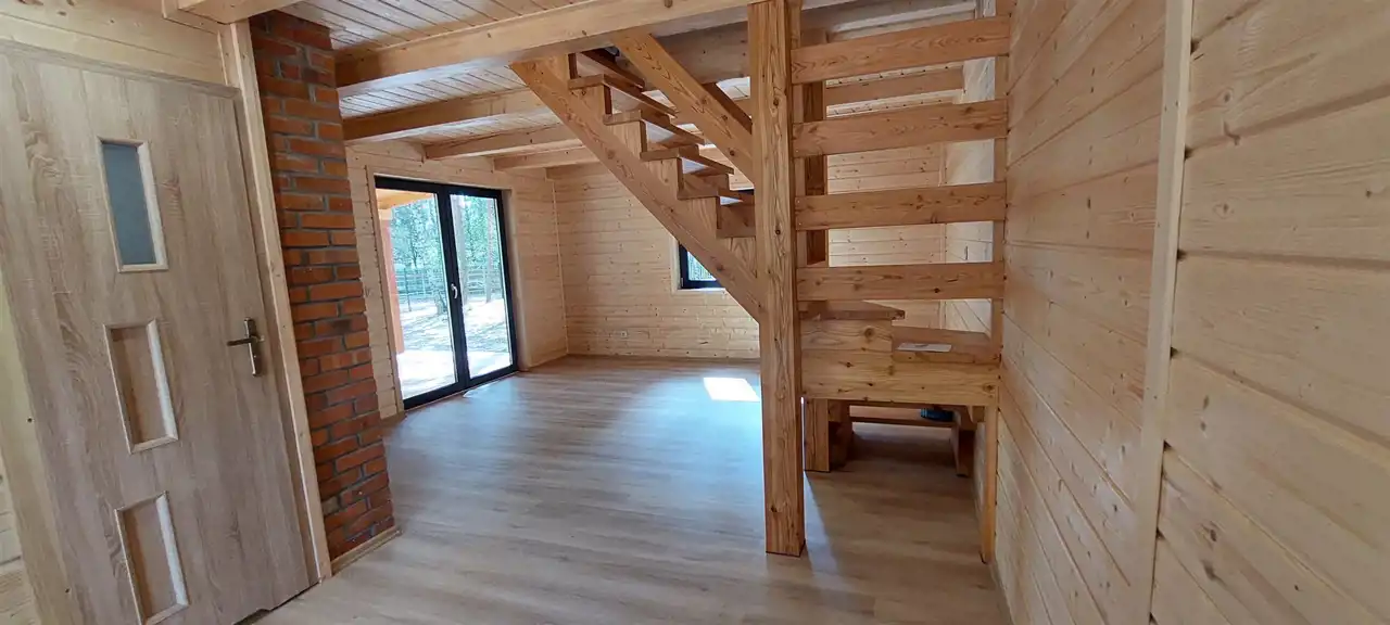- komin murowany- możliwość zainstalowania kominka, co umożliwia przebywanie w domku praktycznie przez cały rok