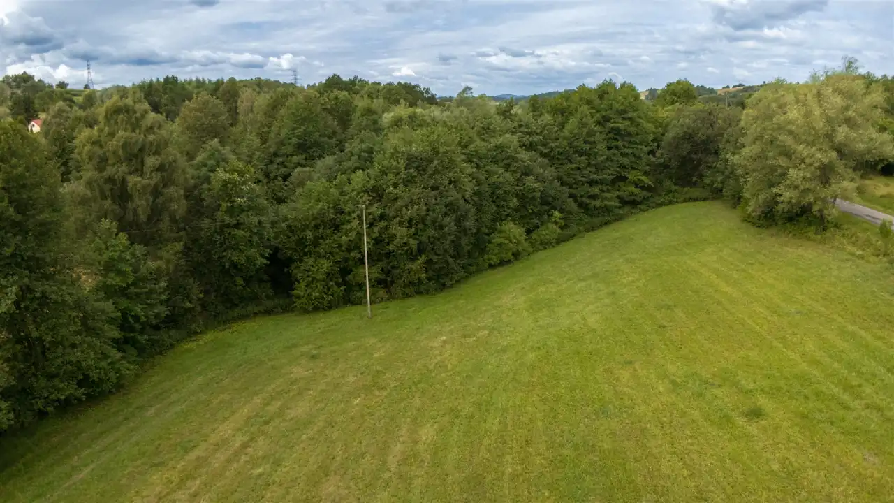 Działka ma kształt prostokąta, jest lekko nachylona i doskonale nasłoneczniona, co sprzyja zarówno budowie, jak i działalności rolniczej. Nieruchomość posiada bezpośredni dostęp do drogi publicznej, gminnej, asfaltowej, która jest regularnie odśnieżana w zimie.