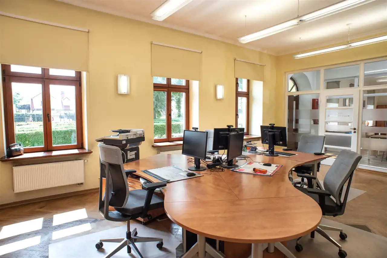 Nieruchomość składa się z działki o powierzchni 3.741 m2, zabudowanej zabytkowym dworkiem o powierzchni zabudowy 513,51 m2, oraz budynkiem garażowo - gospodarczym składającym się z 6 boksów garażowych i 2 pomieszczeń gospodarczych o łącznej powierzchni użytkowej 186,09 m2.