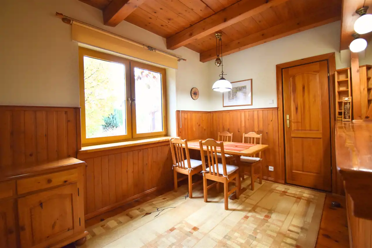 Urokliwy, w całości drewniany dom z 1989 roku urzeka swoim klimatem i przytulną atmosferą. Wnętrza kryją wiele schowków i zakamarków, które dodają charakteru i funkcjonalności. Działka jest duża, pełna drzew i zieleni, z miejscem na wypoczynek, grilla czy spotkania z przyjaciółmi. Całość ogrodzona, bezpieczna i przyjazna dla zwierząt. W bryle budynku znajduje się garaż, co zwiększa wygodę codziennego użytkowania. Ogrzewanie gazowe. To wyjątkowa nieruchomość z duszą – idealna dla osób, które cenią spokój, przyrodę i niepowtarzalny klimat drewnianych domów.