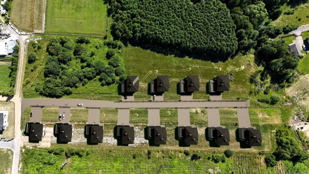 Działka sprzedawana z pozwoleniem na budowę, projektem budowanym oraz udziałem w drodze dojazdowej.