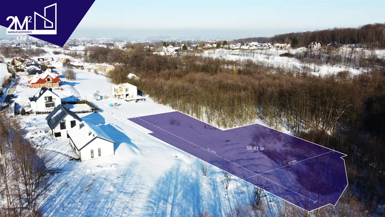 - Powierzchnia: 5641 m² z wydanym wz na dwa budynki mieszkalne.