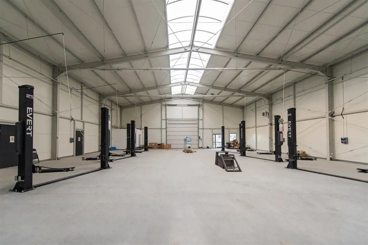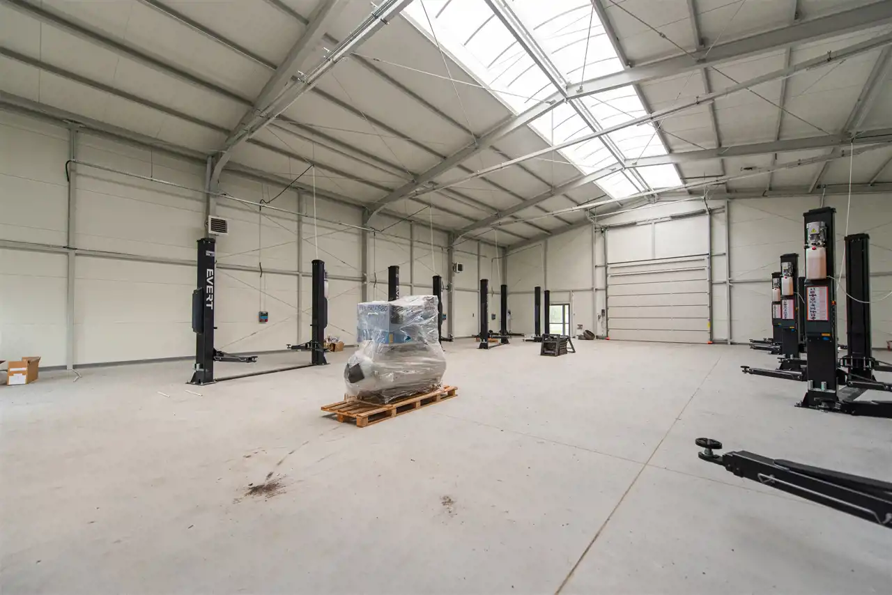 Moc przyłączeniowa 40 kW. Dodatkowo przestrzeń biurowa 10 m2, łazienka z prysznicem, dwa pomieszczenia gospodarcze.