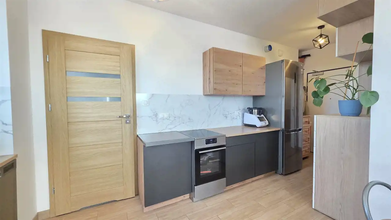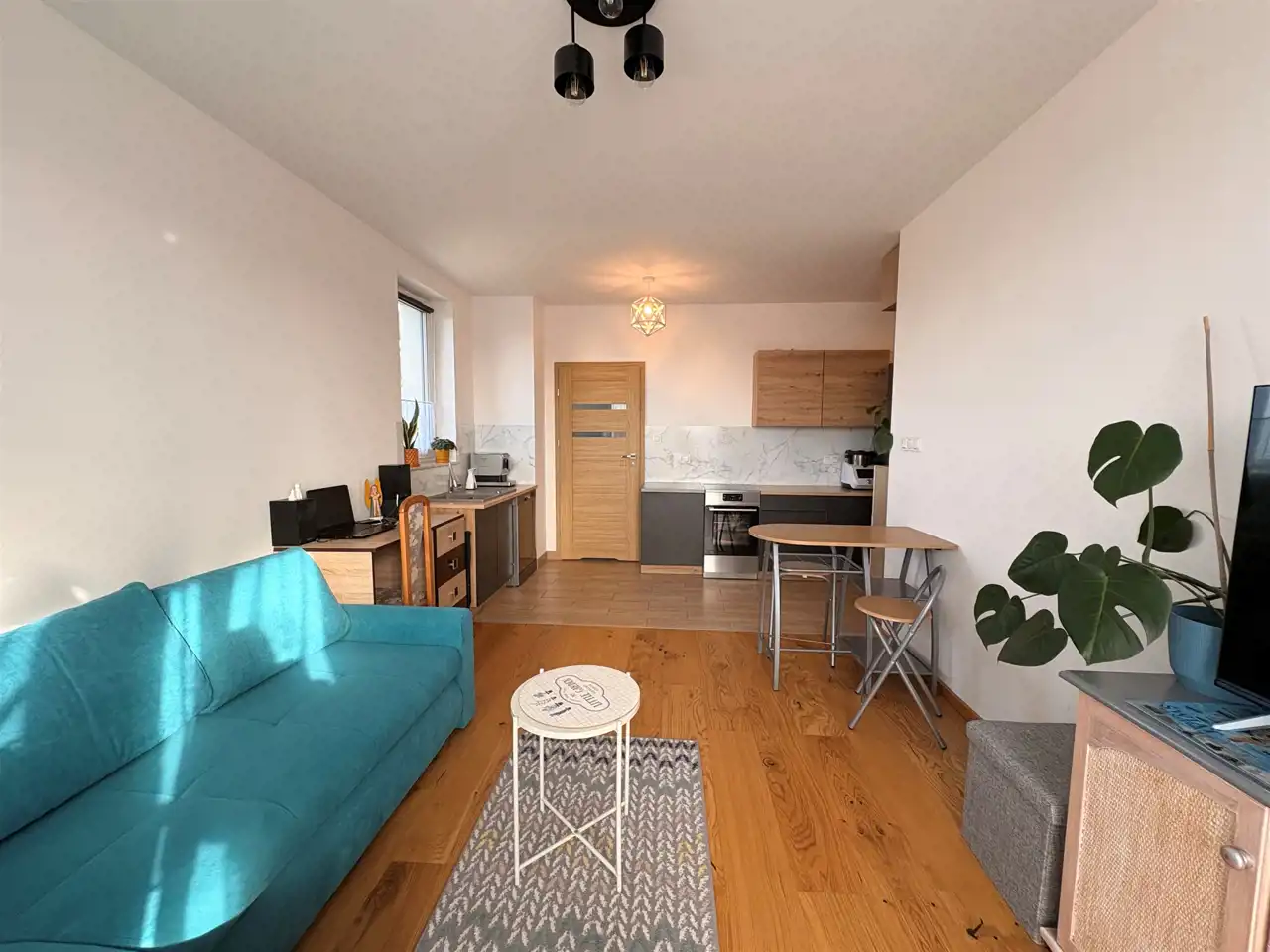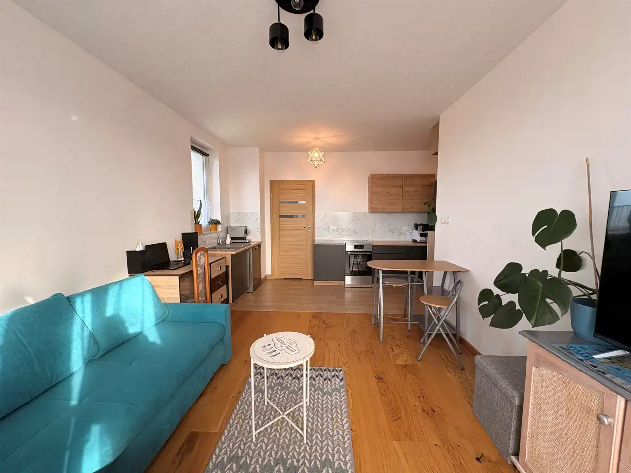 - duży salon z aneksem kuchennym I WYJŚCIEM NA BALKON