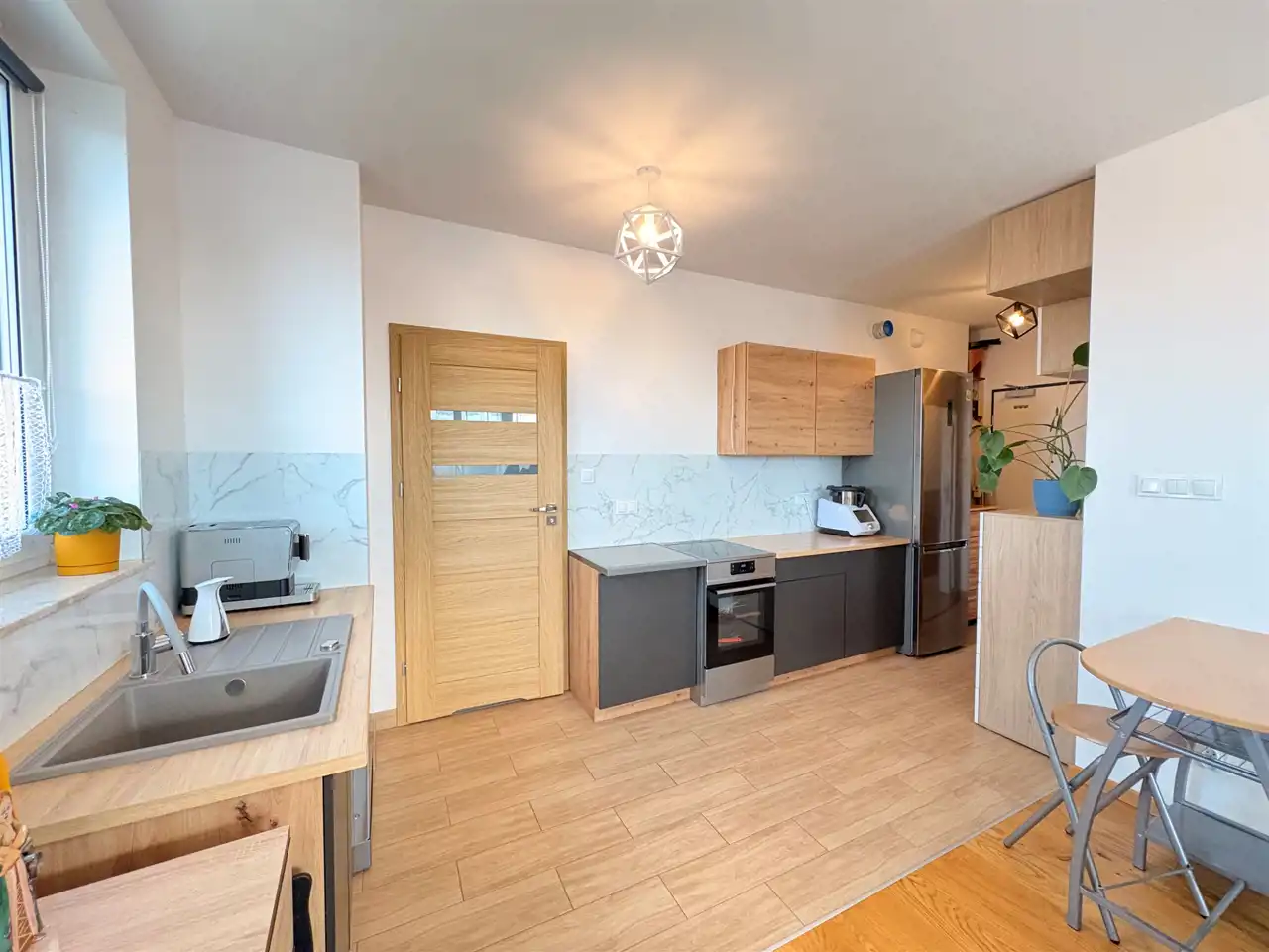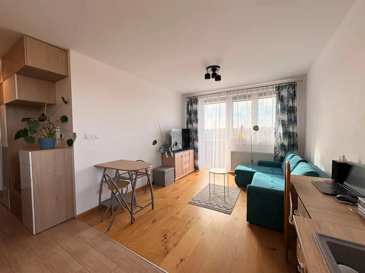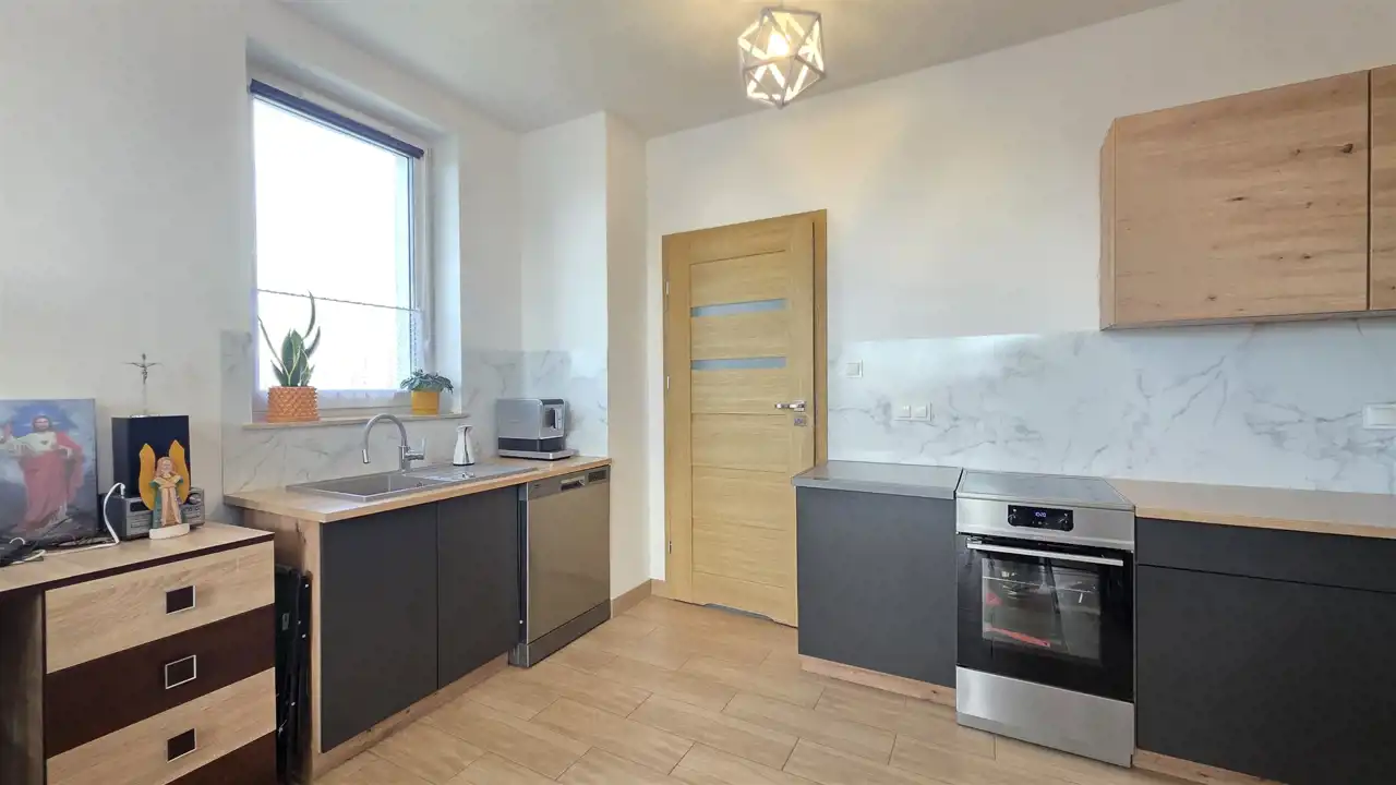 - duży salon z aneksem kuchennym I WYJŚCIEM NA BALKON