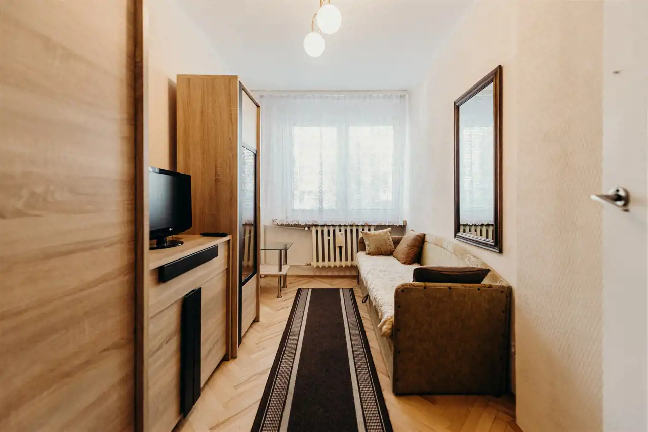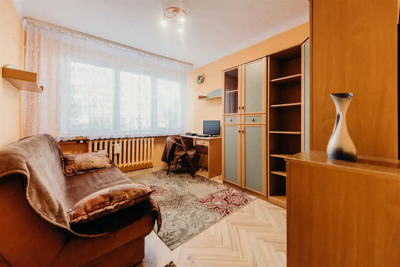 Mieszkanie jest w pełni umeblowane i wyposażone – gotowe do zamieszkania bez dodatkowych nakładów finansowych. Czynsz administracyjny wynosi ok. 790 zł miesięcznie.