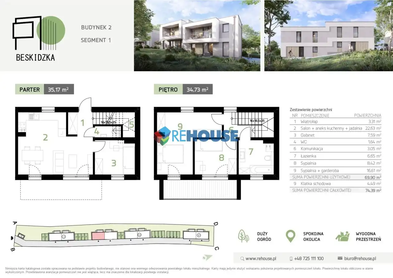 Niniejsza oferta tyczy się mieszkania w budynku 2 w segmencie 1 z nowoczesnym disignem o powierzchni 74,39m2 podzielony na dwa poziomy.