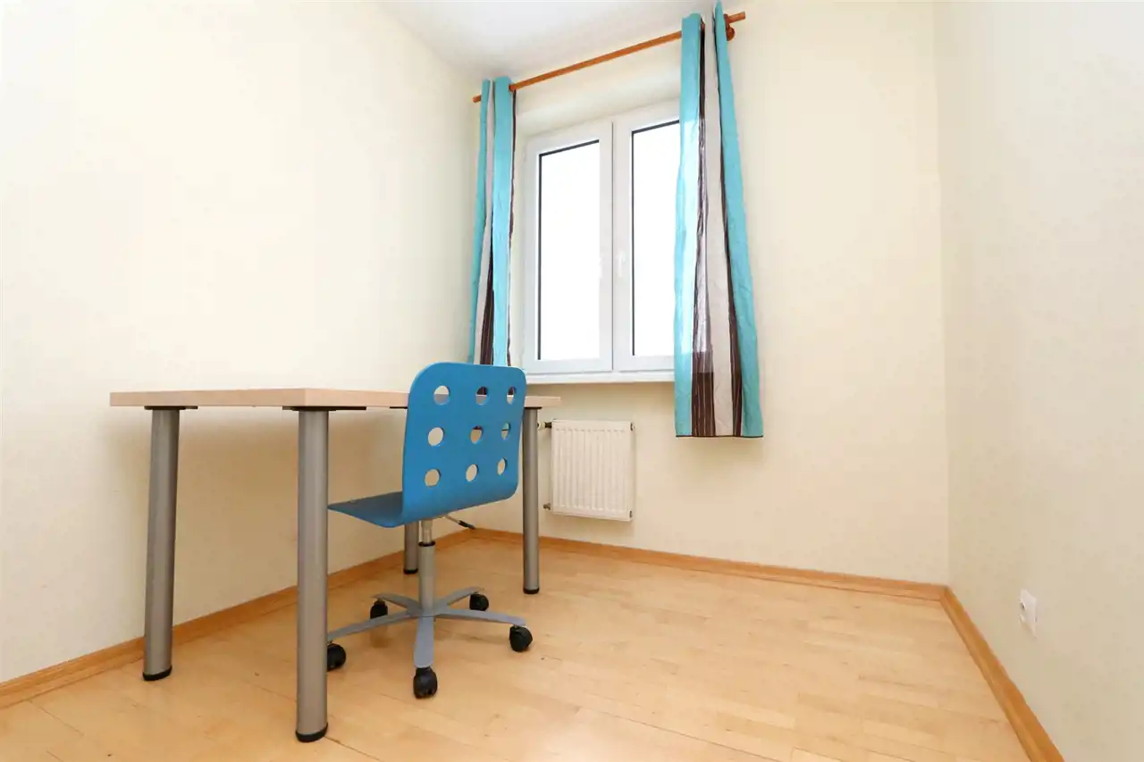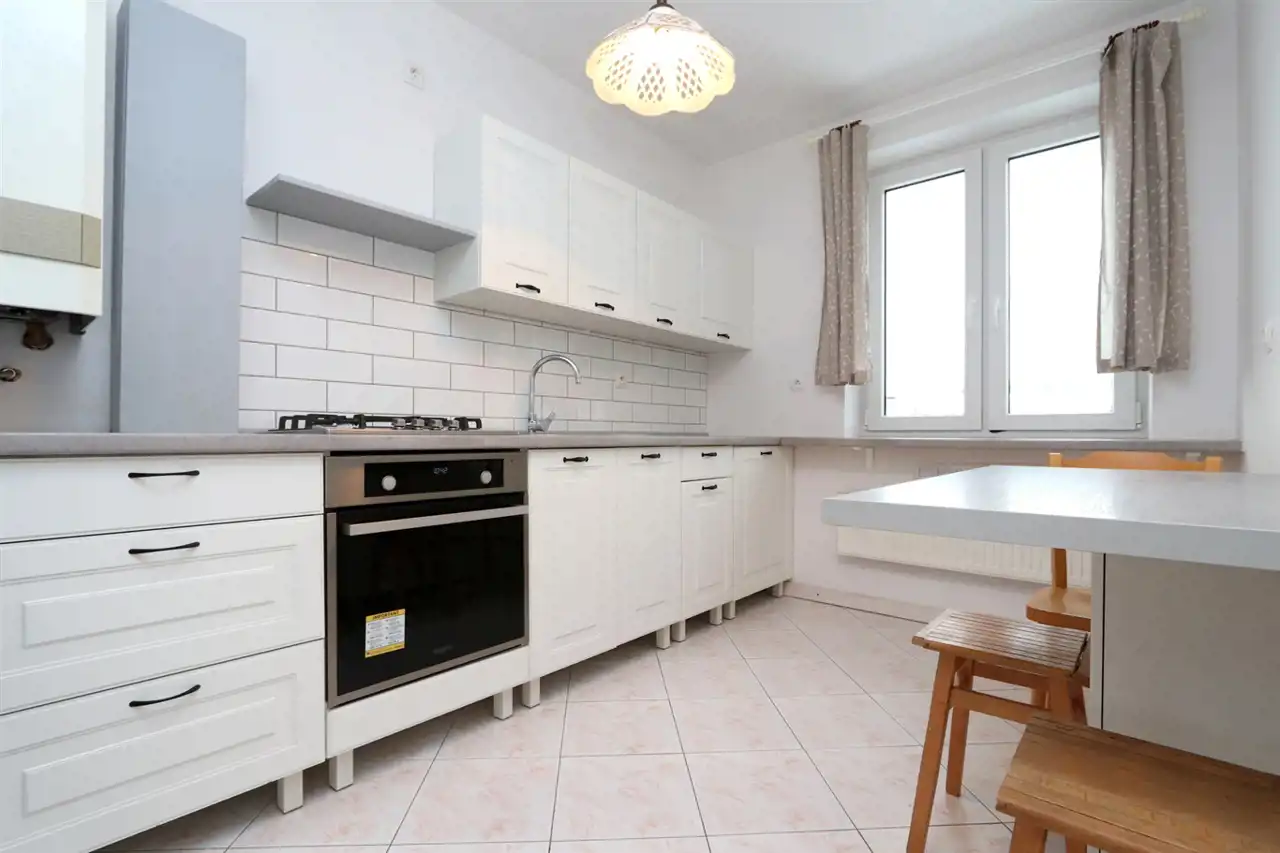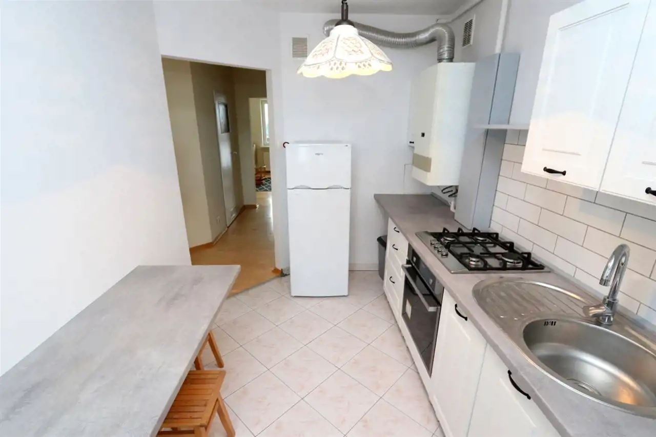 Mieszkanie ogrzewane dwufunkcyjnym piecem gazowym. Powierzchnia całkowita mieszkania to 75 metrów2 po podłodze. Czynsz administracyjny w wysokości około 650 zł.
