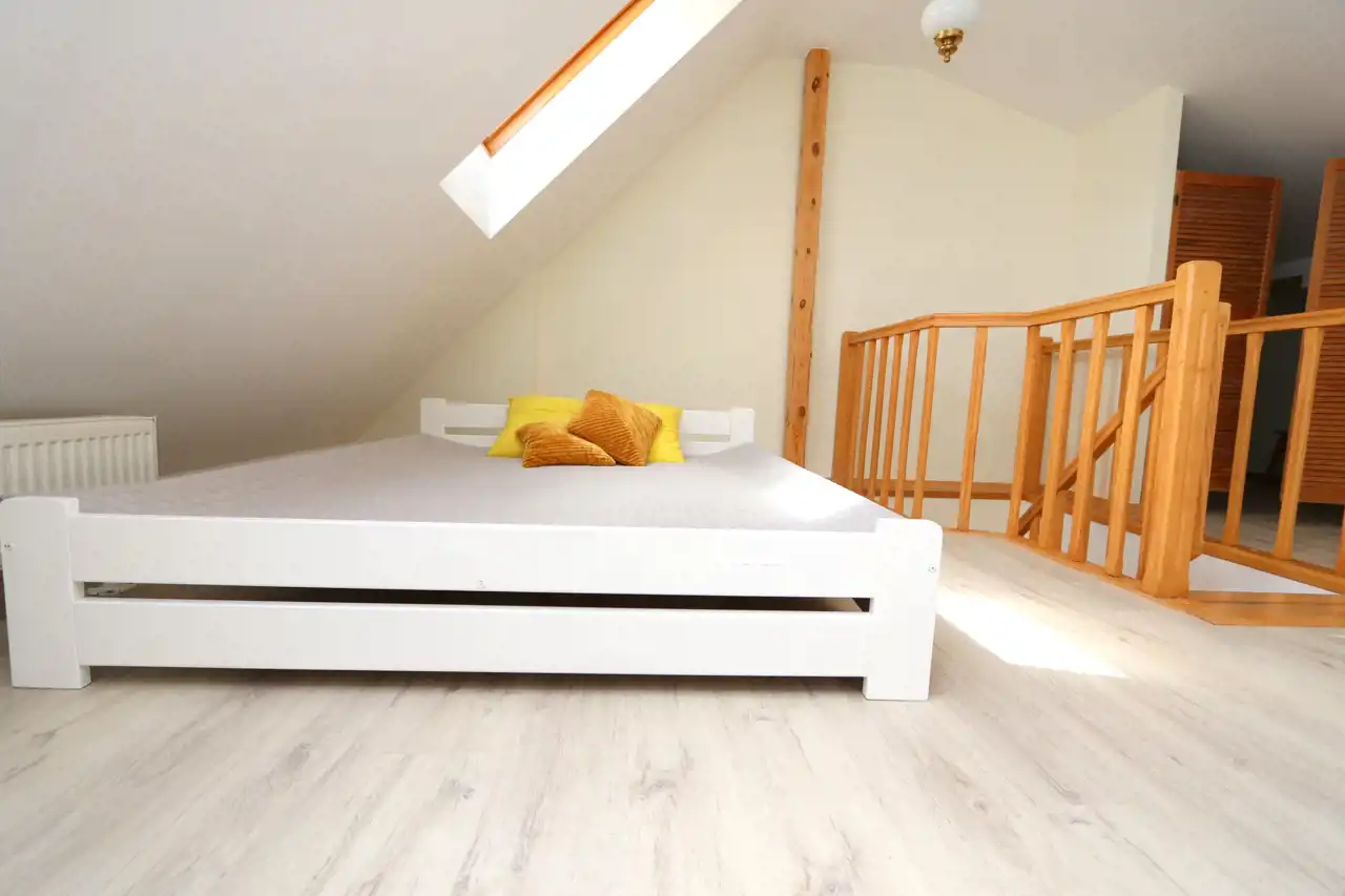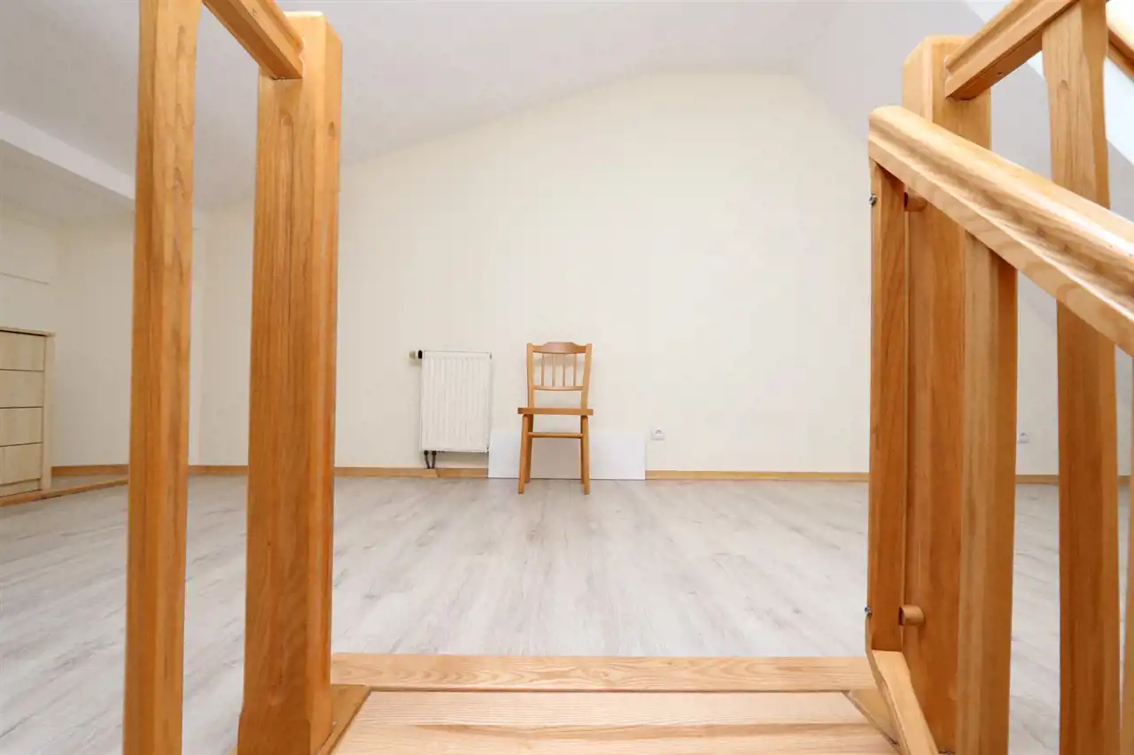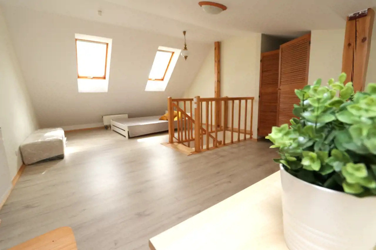 - wysokie poddasze, gdzie znajduje się bardzo duży pokój i garderoba, są tam 2 okna dachowe, co czyni to pomieszczenie jasnym i przyjemnym