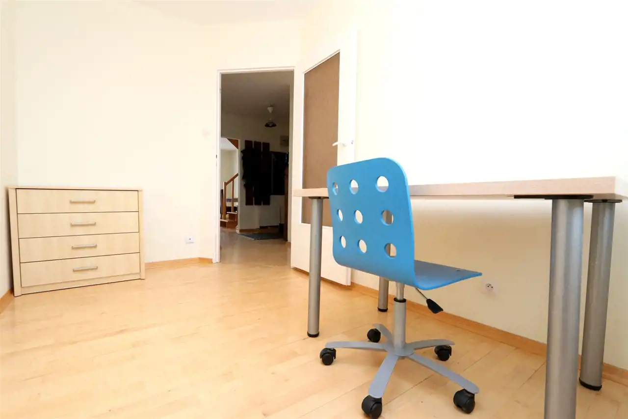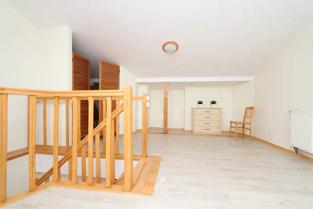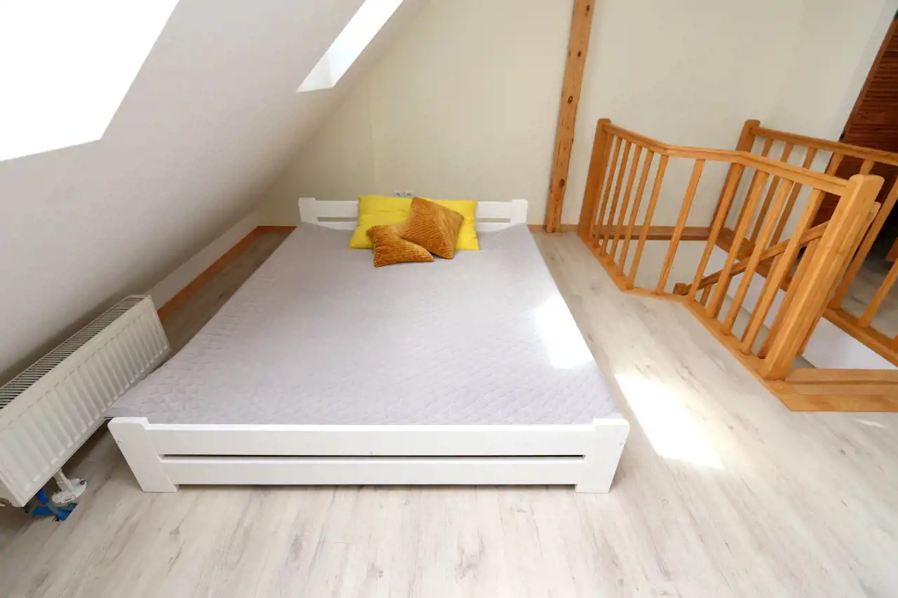 - wysokie poddasze, gdzie znajduje się bardzo duży pokój i garderoba, są tam 2 okna dachowe, co czyni to pomieszczenie jasnym i przyjemnym