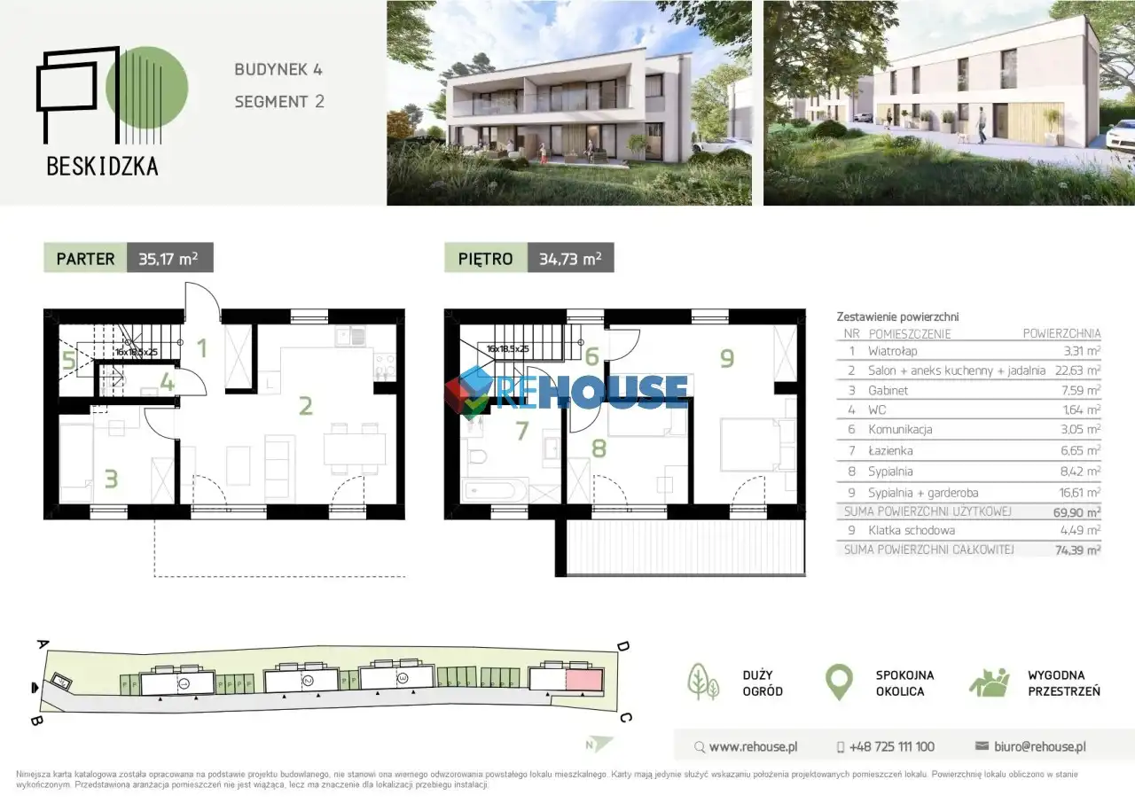 Niniejsza oferta tyczy się mieszkania w budynku 4 w segmencie 2 z nowoczesnym disignem o powierzchni 74,39m2 podzielony na dwa poziomy.