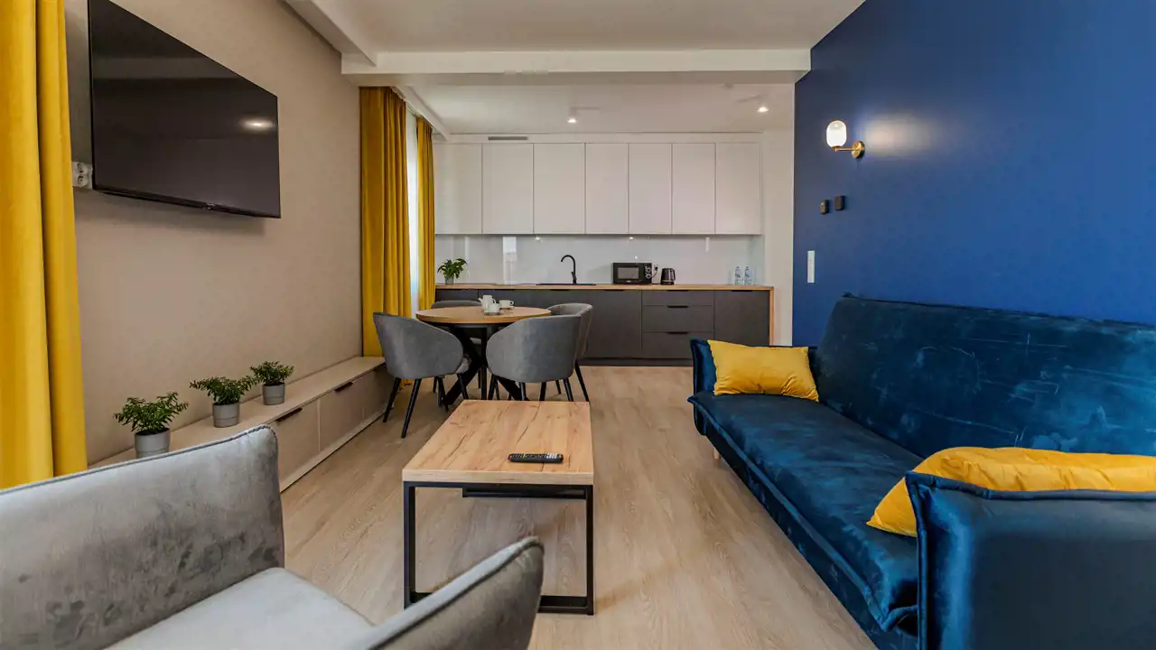 - salonu z aneksem kuchennym