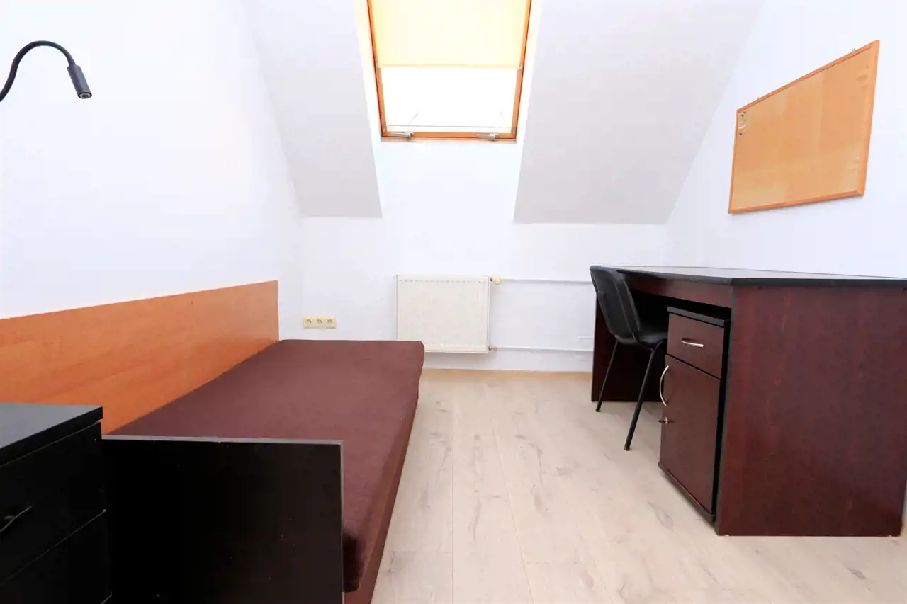 - dwa pokoje z łóżkiem oraz biurkiem i szafą