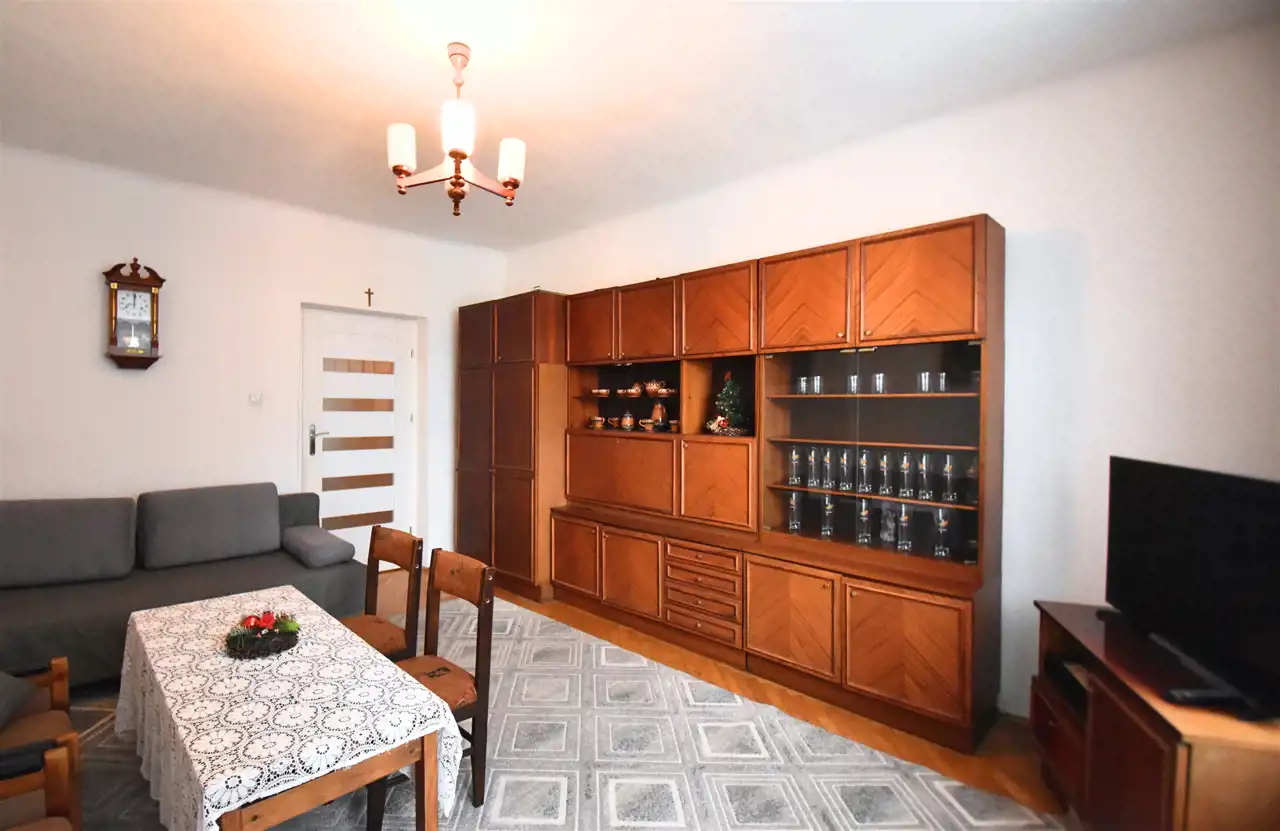 Wnętrze jest umeblowane i gotowe do zamieszkania, urządzone w klasycznym, ponadczasowym stylu. Mieszkanie jest jasne i funkcjonalne, z czytelnym układem pomieszczeń. Wyposażenie obejmuje podstawowe meble oraz niezbędny sprzęt AGD, dzięki czemu nie wymaga dodatkowych nakładów przy wprowadzaniu się.