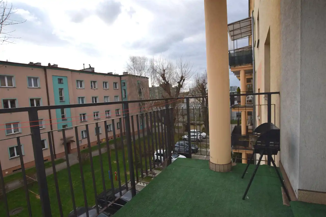 Do mieszkania przynależy duży balkon oraz piwnica. Miejsce parkingowe ogólnodostępne przed budynkiem.