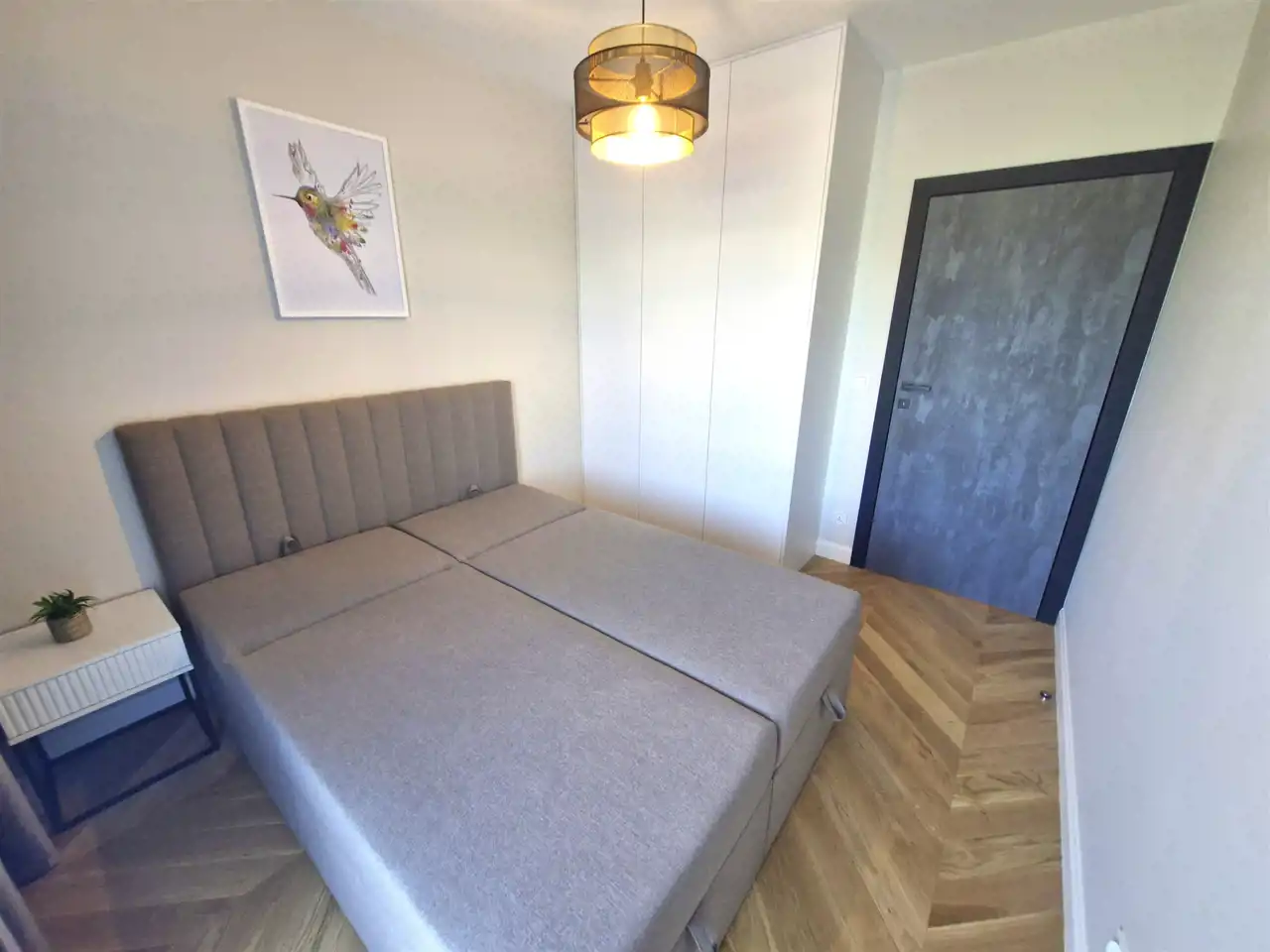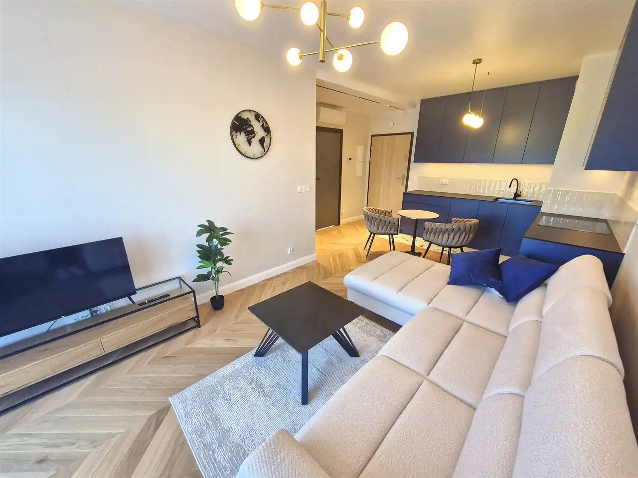 Oferujemy do wynajęcia przestronny, jasny, klimatyzowany, dwupokojowy apartament, zlokalizowany przy ulicy Kwiatkowskiego w nowej inwestycji Panorama Kwiatkowskiego z dostępem do plaży i szeregiem innych udogodnień :)