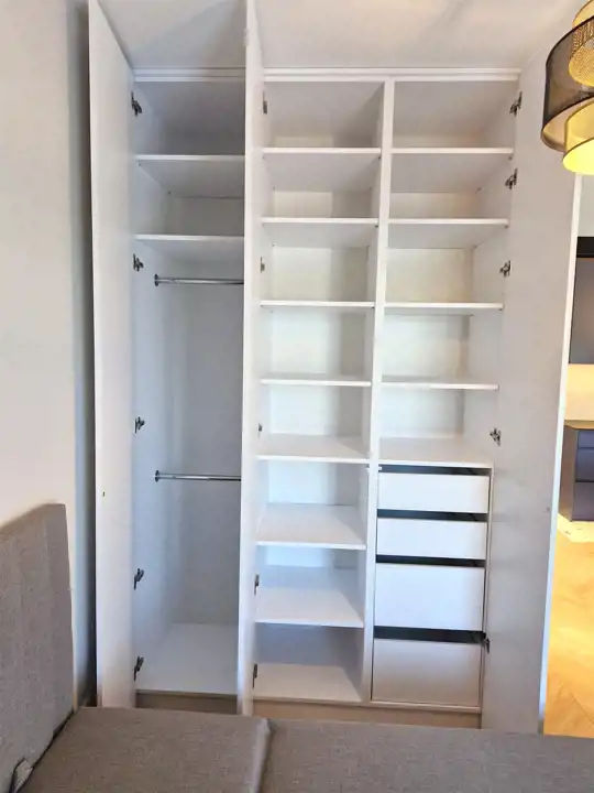 - zabudowa kuchenna ze sprzętem AGD (płyta indukcyjna, piekarnik, lodówka, zmywarka)