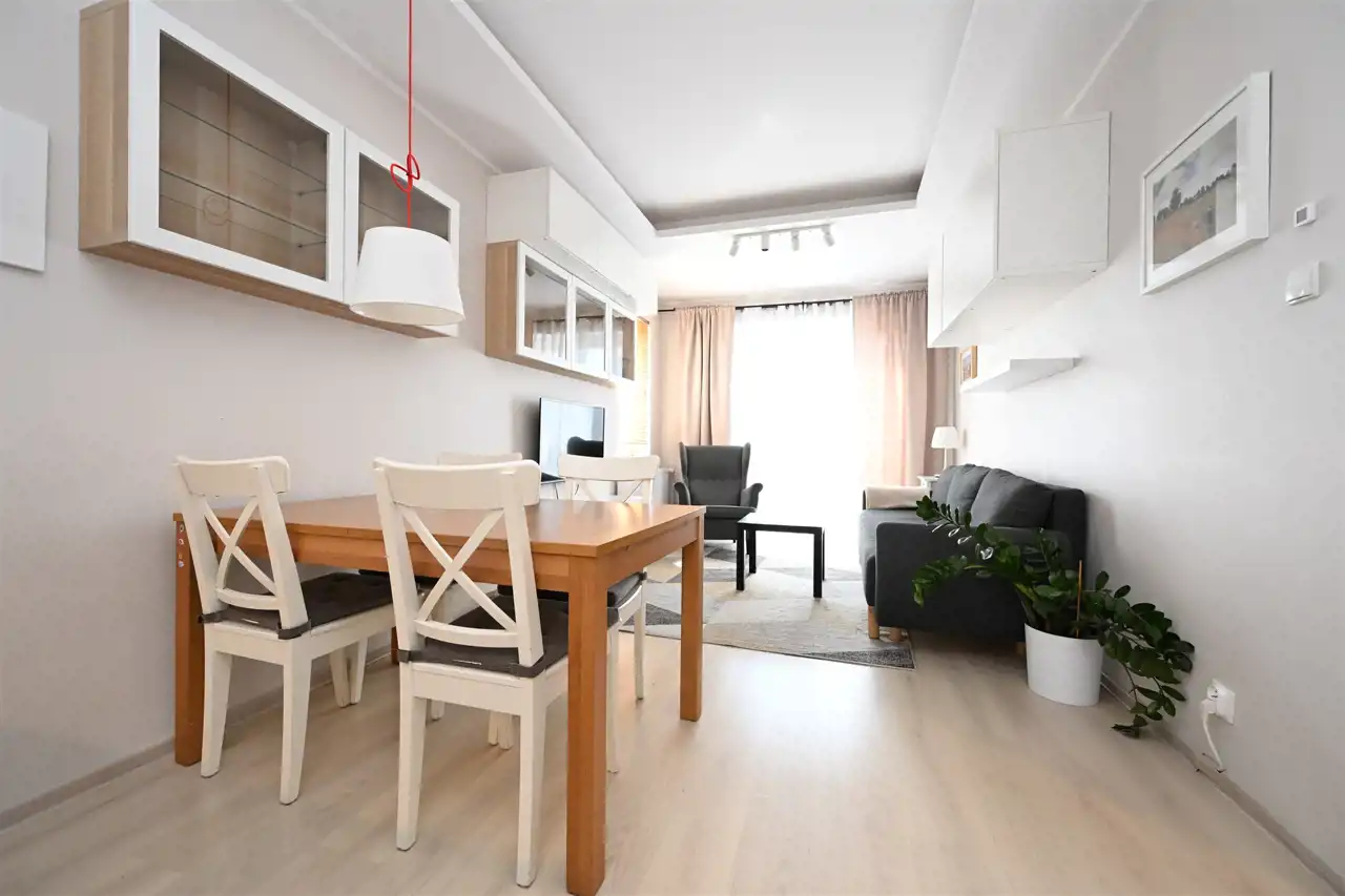 Mieszkanie wykończone w wysokim standardzie, jasne, przestronne, wyposażone. Osiedle wyposażone w sklepy, strefę medyczną, restaurację, nowoczesny plac zabaw, itp.