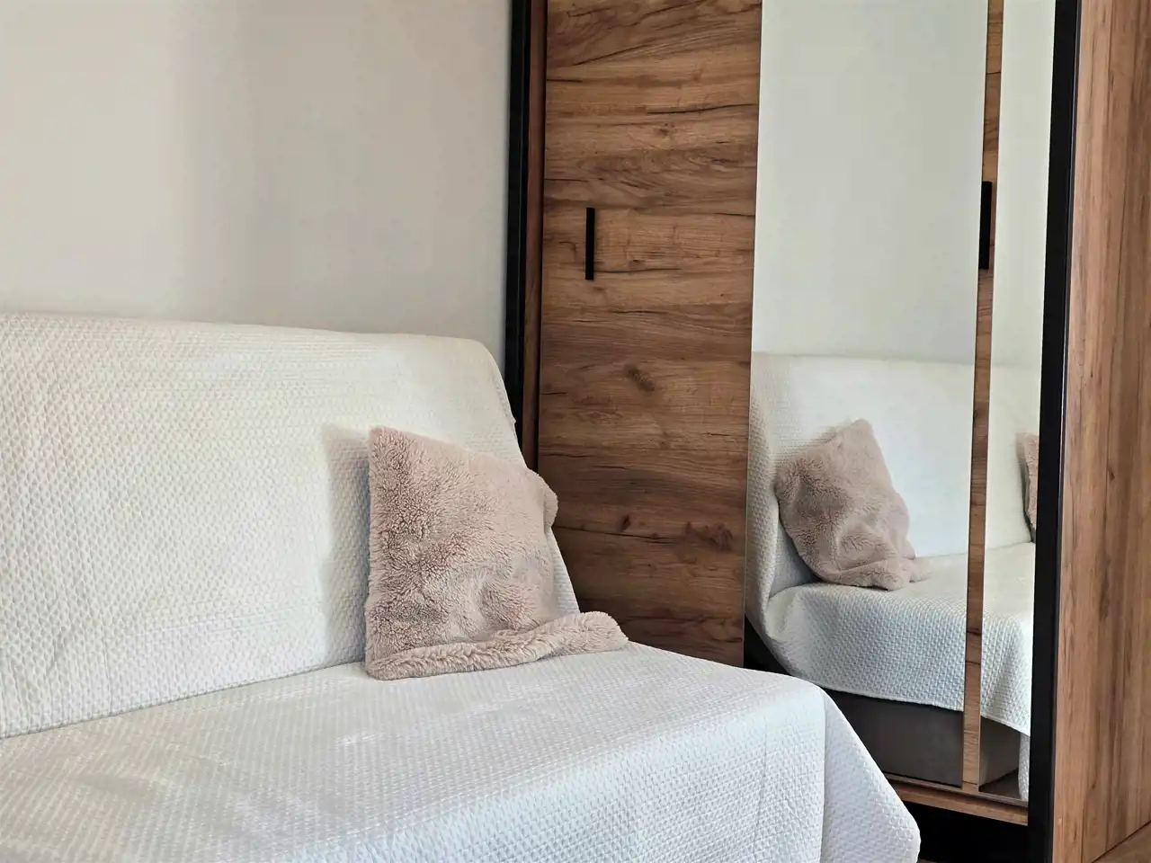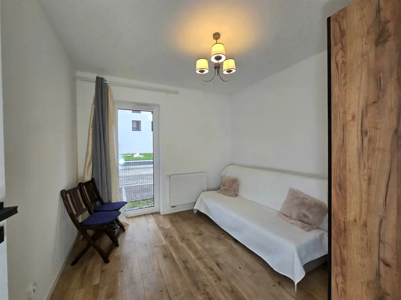 - jasna sypialnia małżeńska z oknami skierowanymi na stronę południową, z wygodnym dwuosobowym łóżkiem i bardzo dużą pojemną szafą przesuwną,