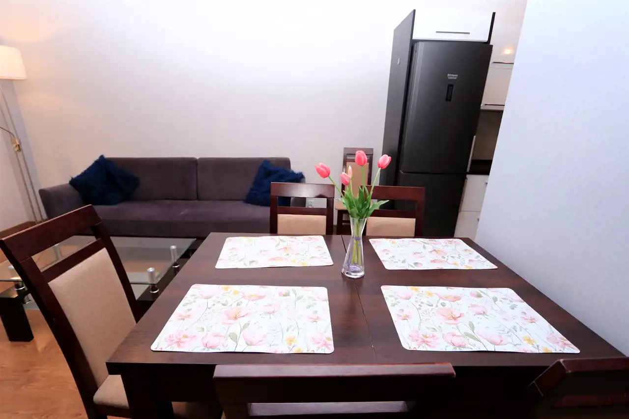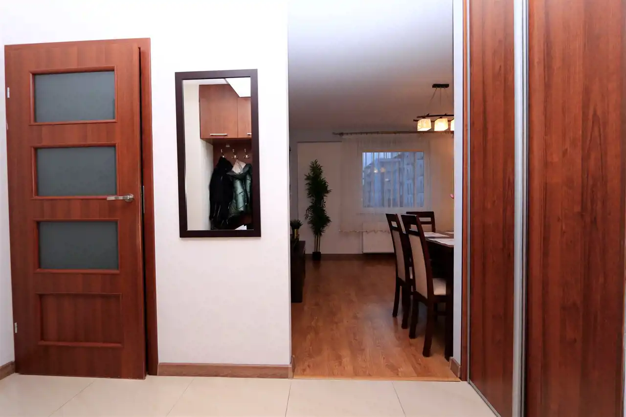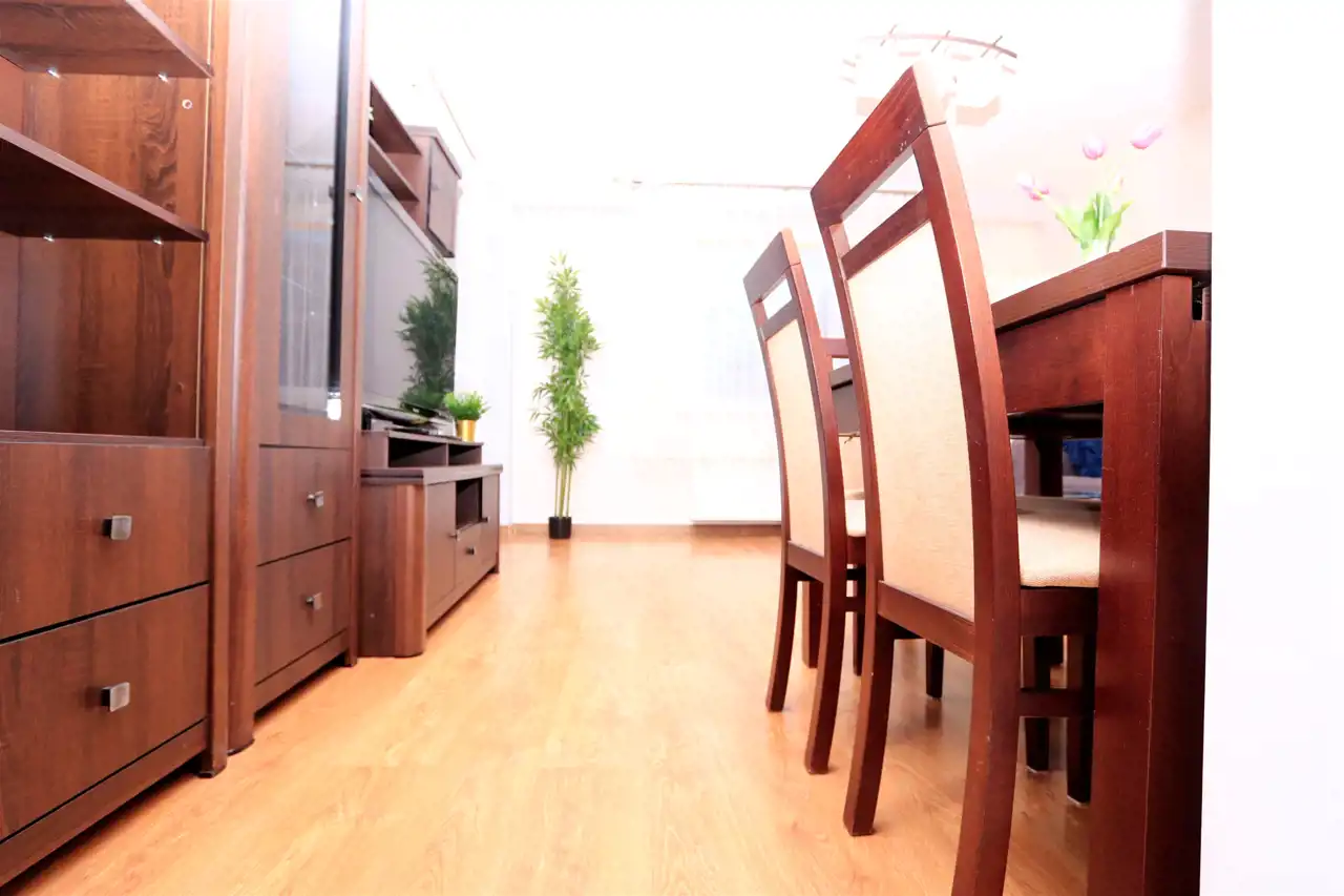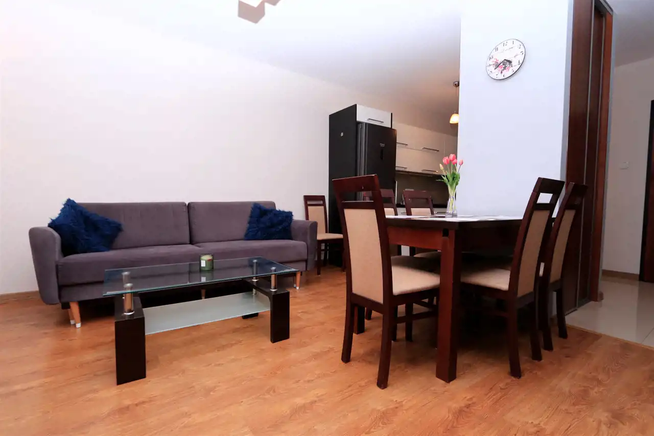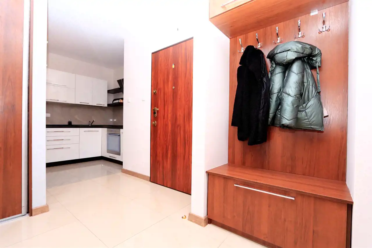 Mieszkanie jest bardzo jasne , przestronne i ustawne. Posiada dużo miejsc do przechowywania, w przedpokoju znajduje się szafa na ubrania sezonowe, w sypialni duża szafa ubraniowa. Salon połączony jest z aneksem kuchennym oraz jadalnią.