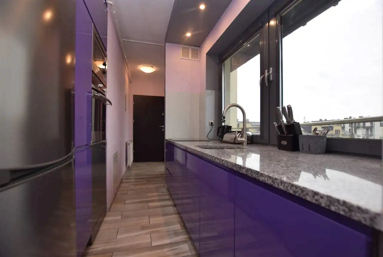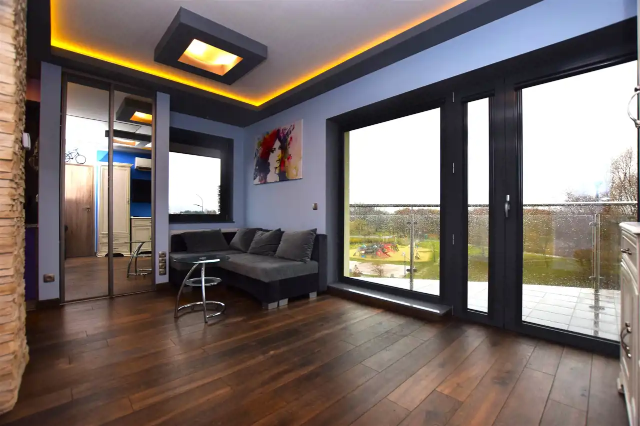 Mieszkanie w nowym budownictwie, z panoramicznymi oknami, wyciszonymi ścianami i drzwiami, ogrzewaniem podłogowym w łazience, a także z parkingiem pod budynkiem.