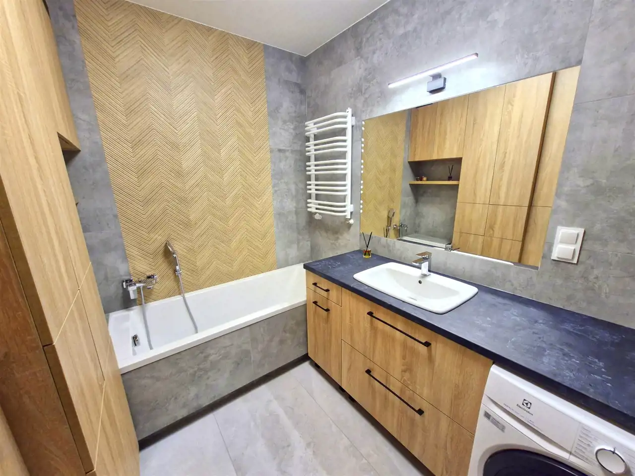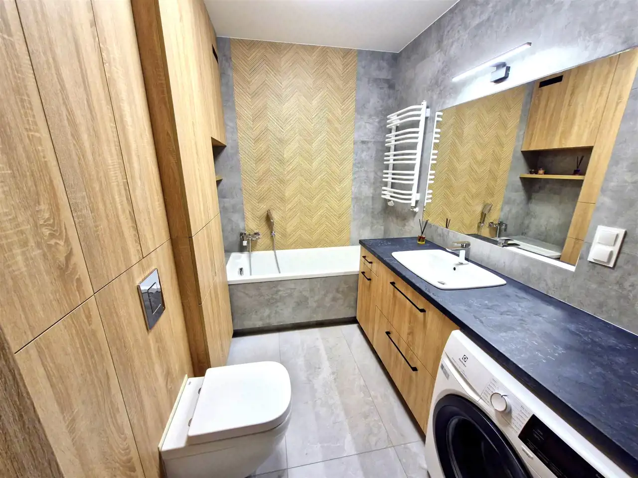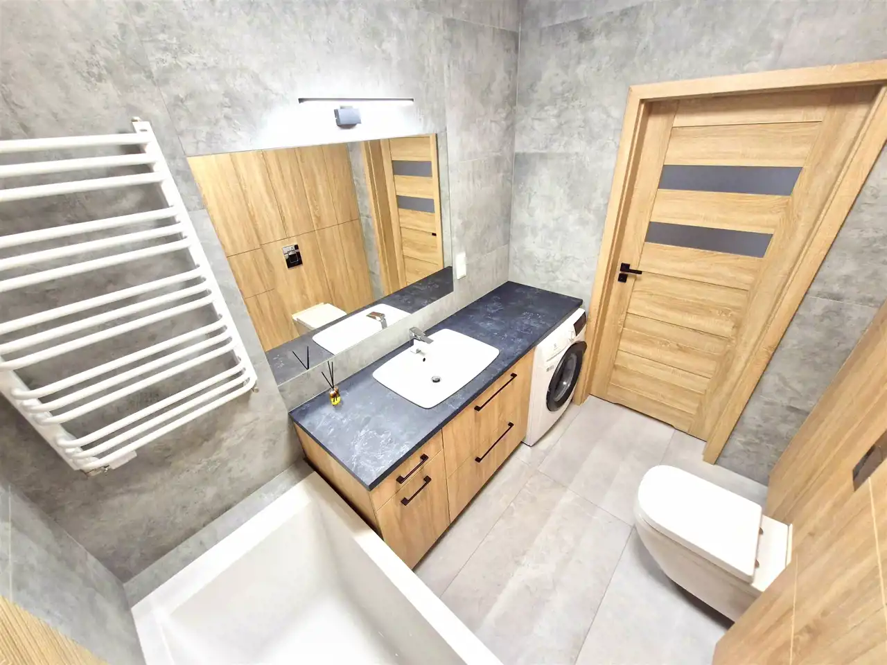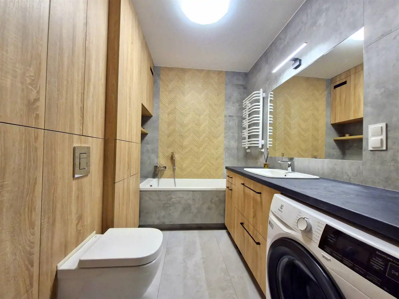 - w łazience wanna oraz pralka
