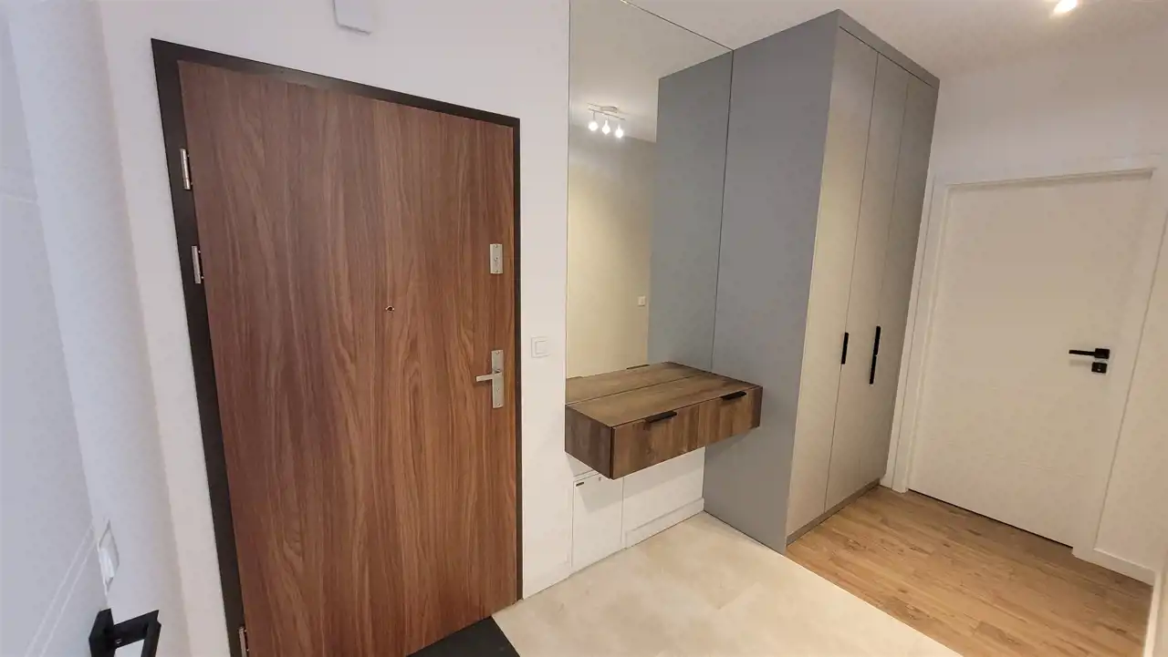 - przedpokój wyposażony w pojemną szafę zabudowaną