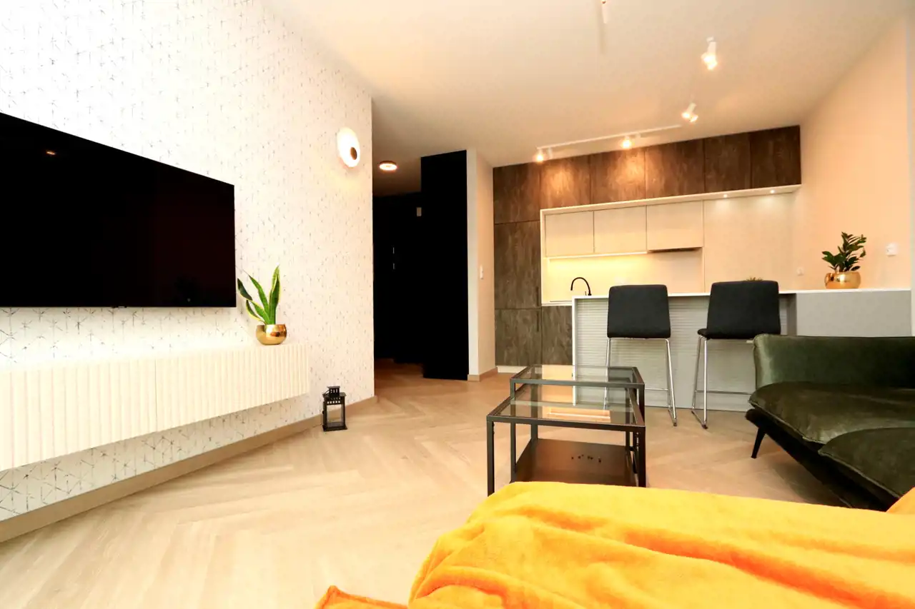 Mieszkanie jest wypełni umeblowane i wyposażone we wszystkie niezbędne elementy.