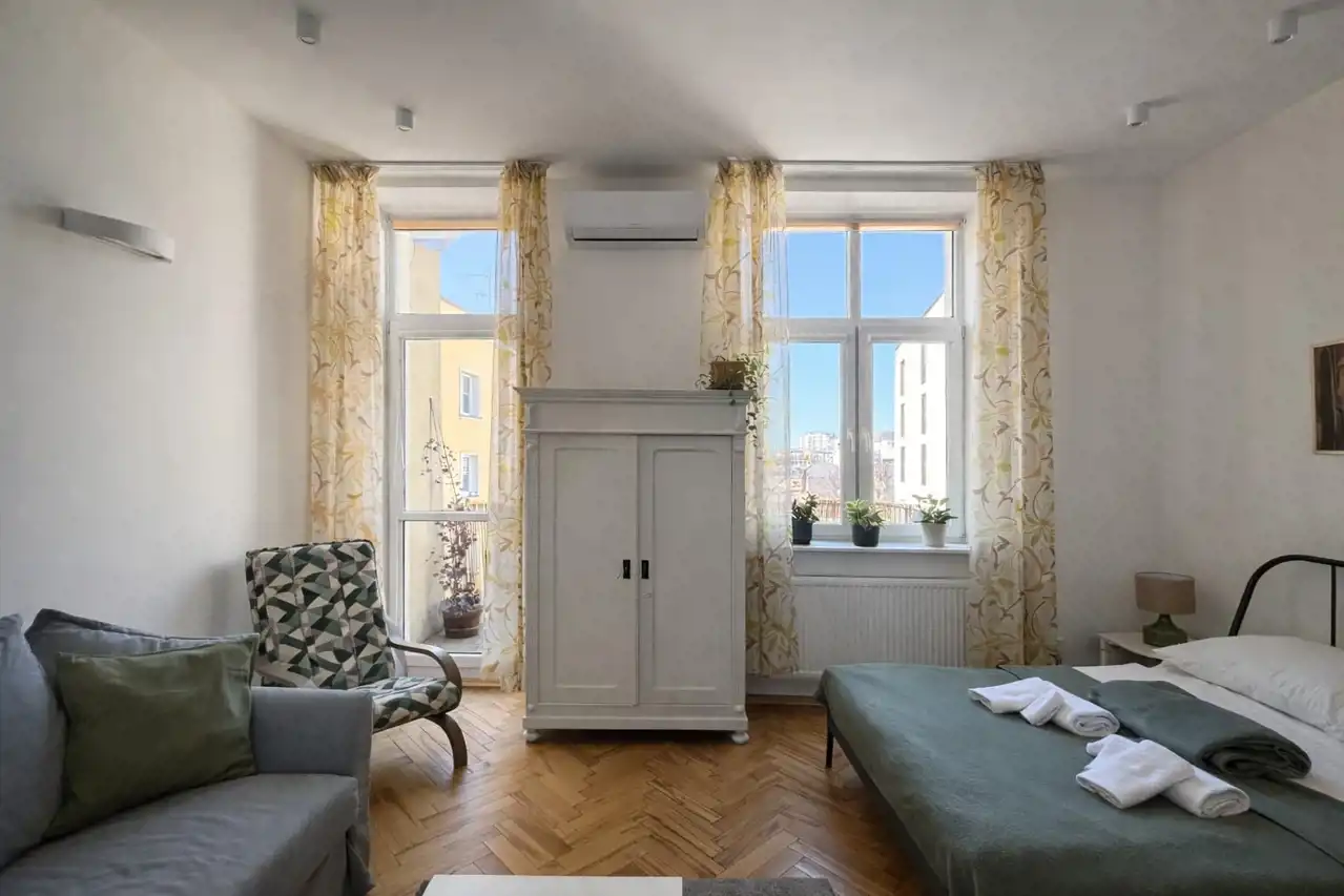 Cena wynajmu: 2 500 zł + media za zuzycie (prąd, woda, gaz (ogrzewane piecykiem dwufunkcyjnym).