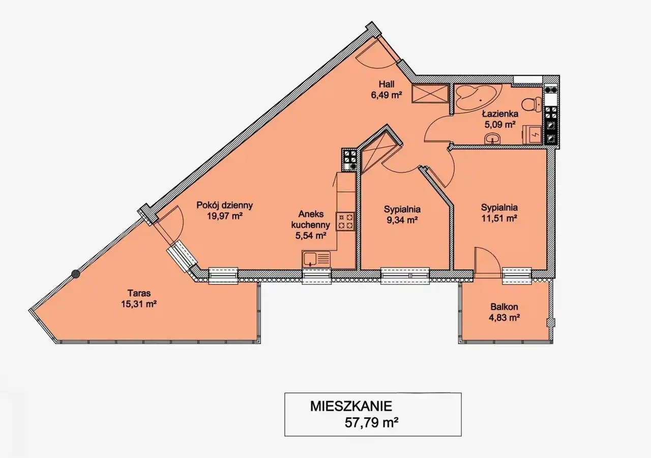 - Charakterystyka mieszkania 58 m2, 3 pokoje