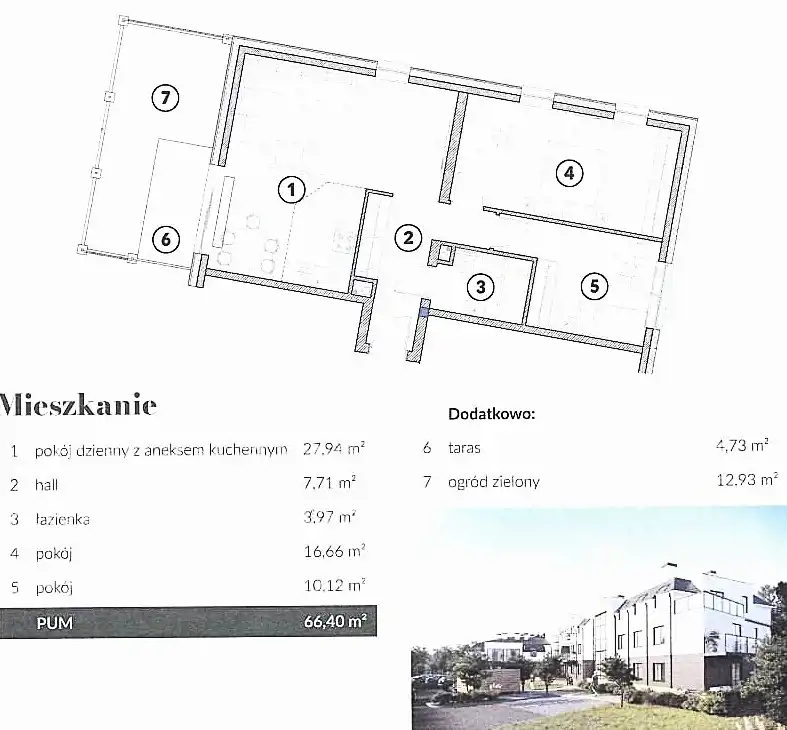 - Charakterystyka mieszkania 66.4 m2, 3 pokoje