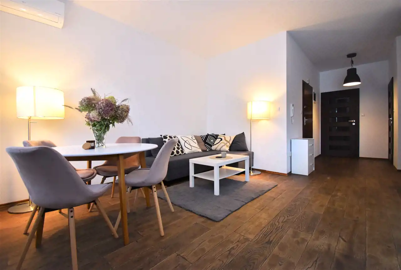 Cena wynajmu: 3500 zł + czynsz 800/ dla 2 os. + media (prąd, Internet, TV)