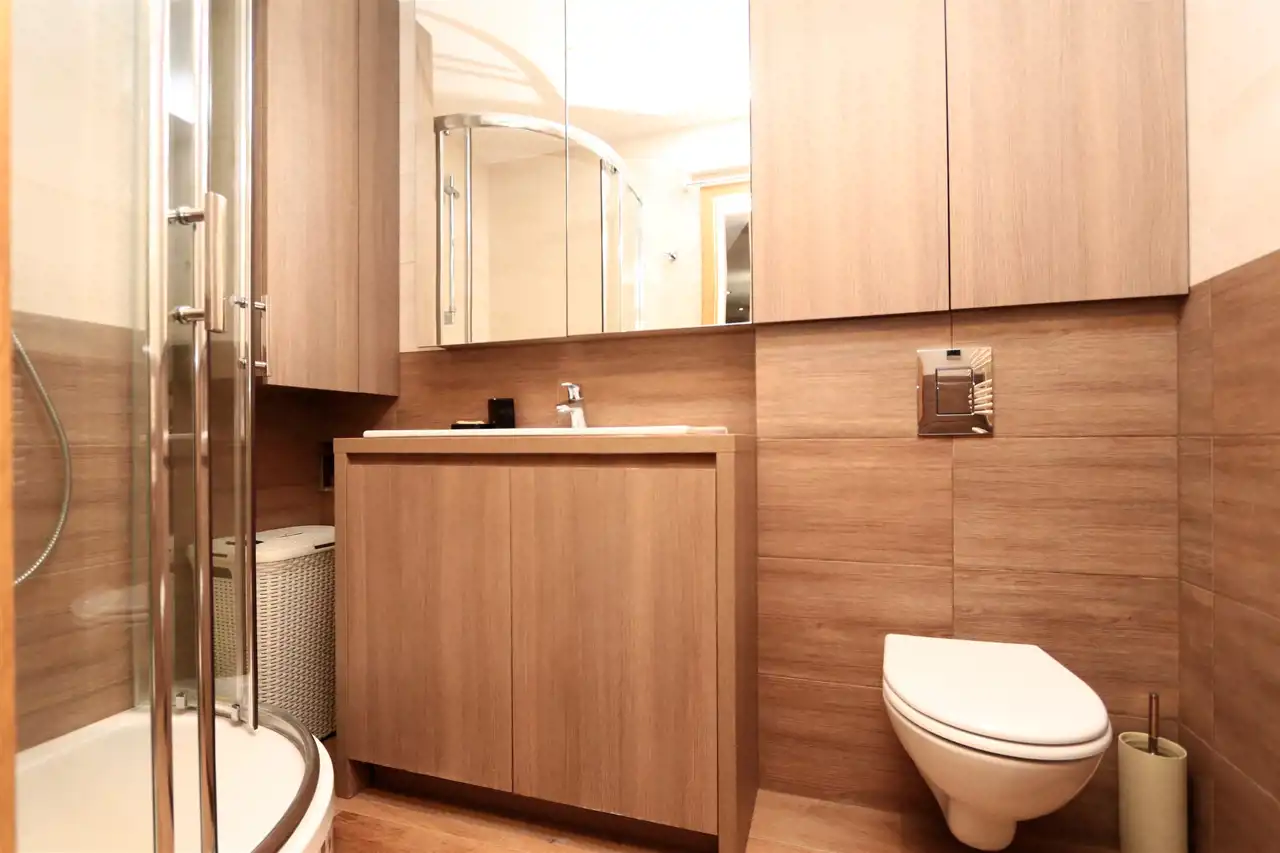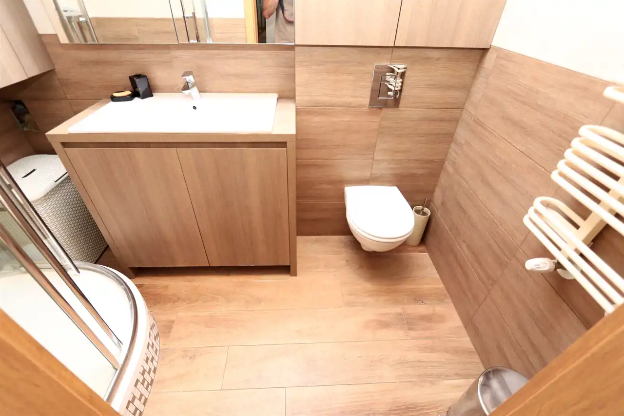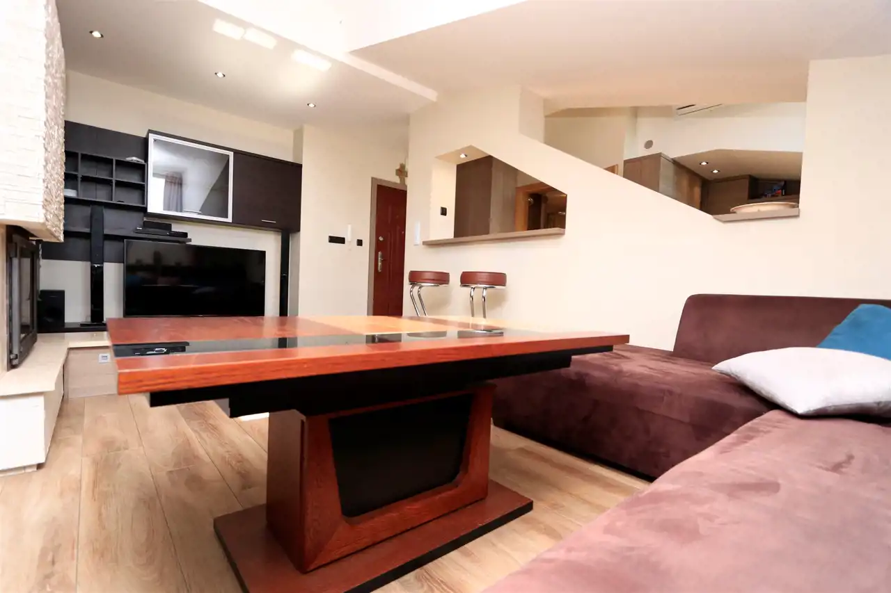 Mieszkanie zostało wykończone w podwyższonym standardzie. Jest w pełni umeblowane i wyposażone, gotowe do zamieszkania.