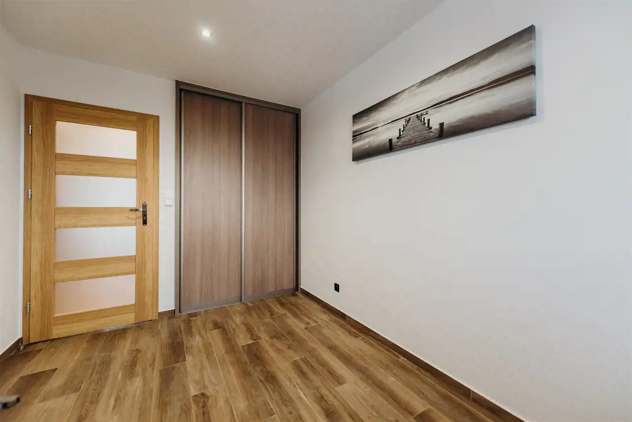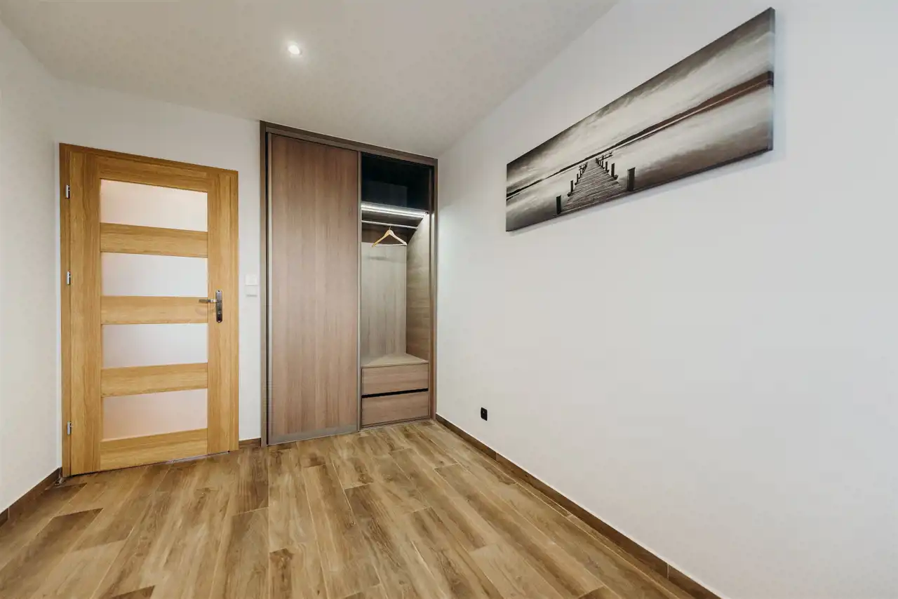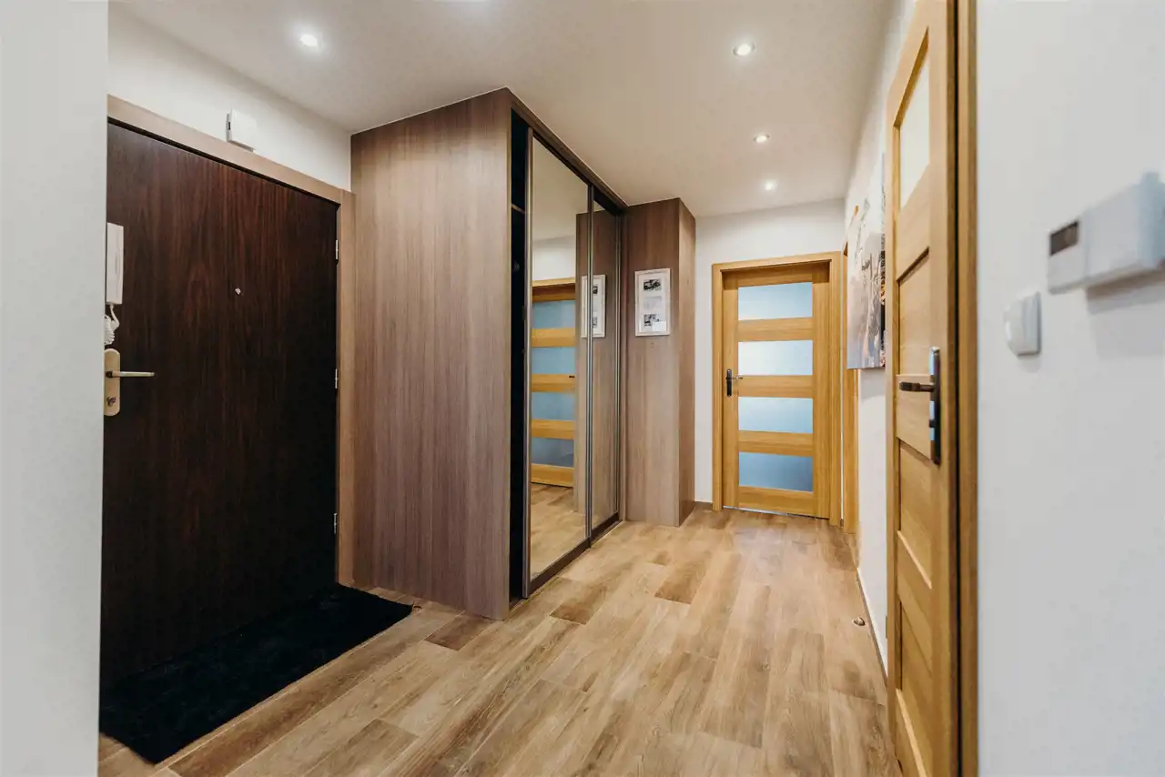 The apartment comes with two balconies and a parking space in the underground garage for an additional fee of 200 PLN.