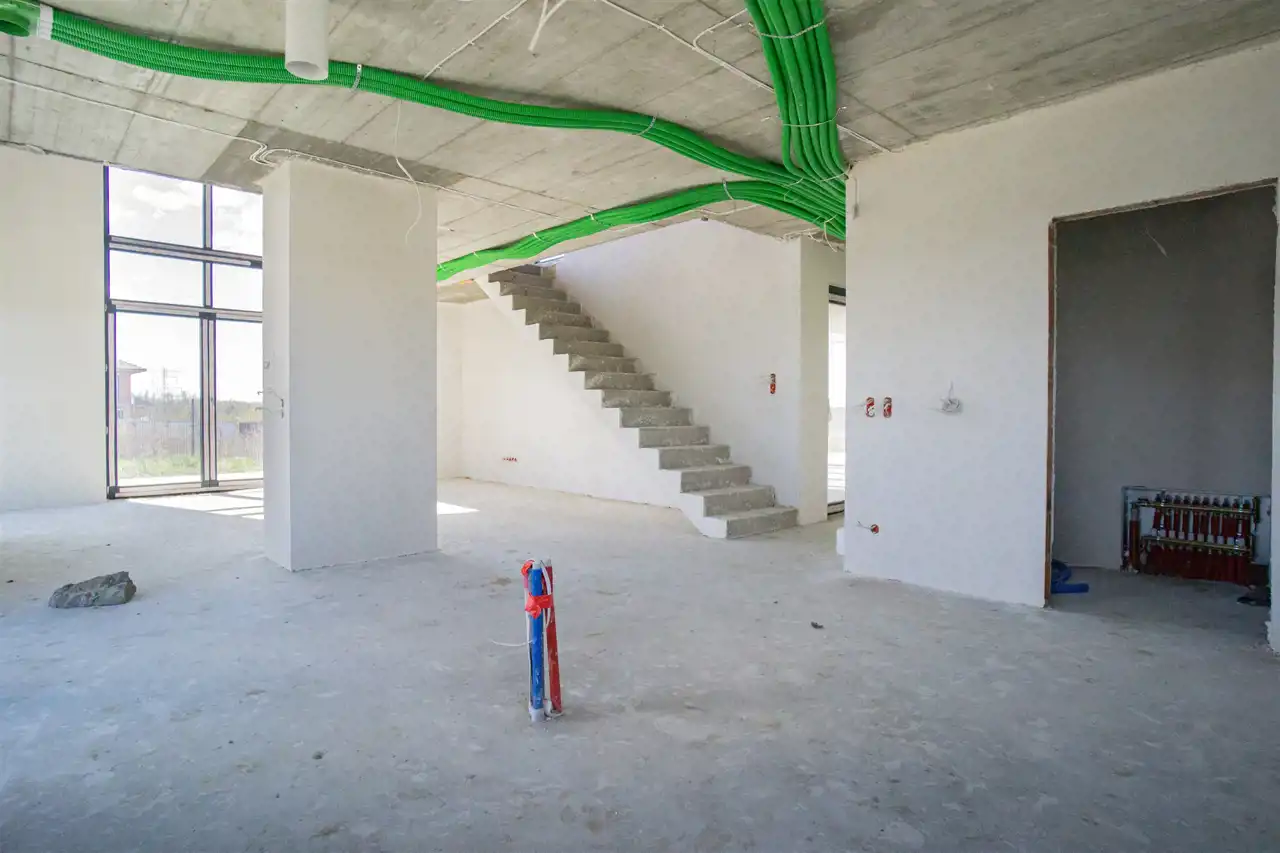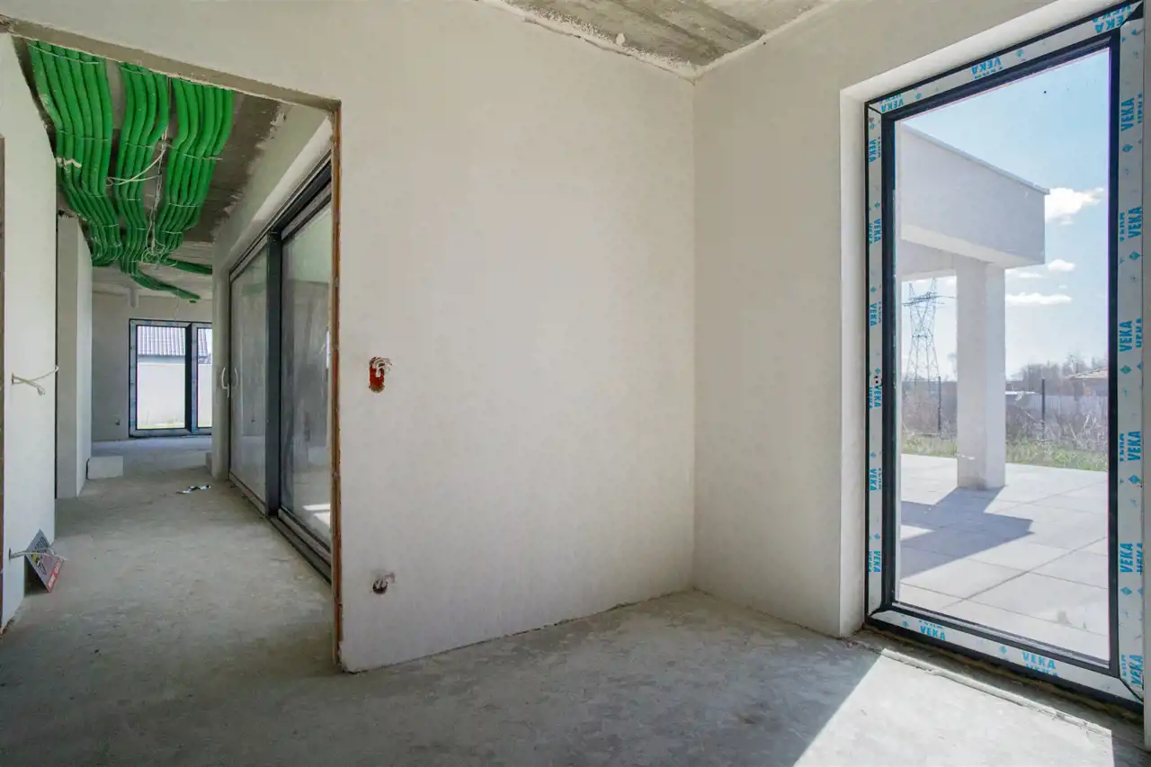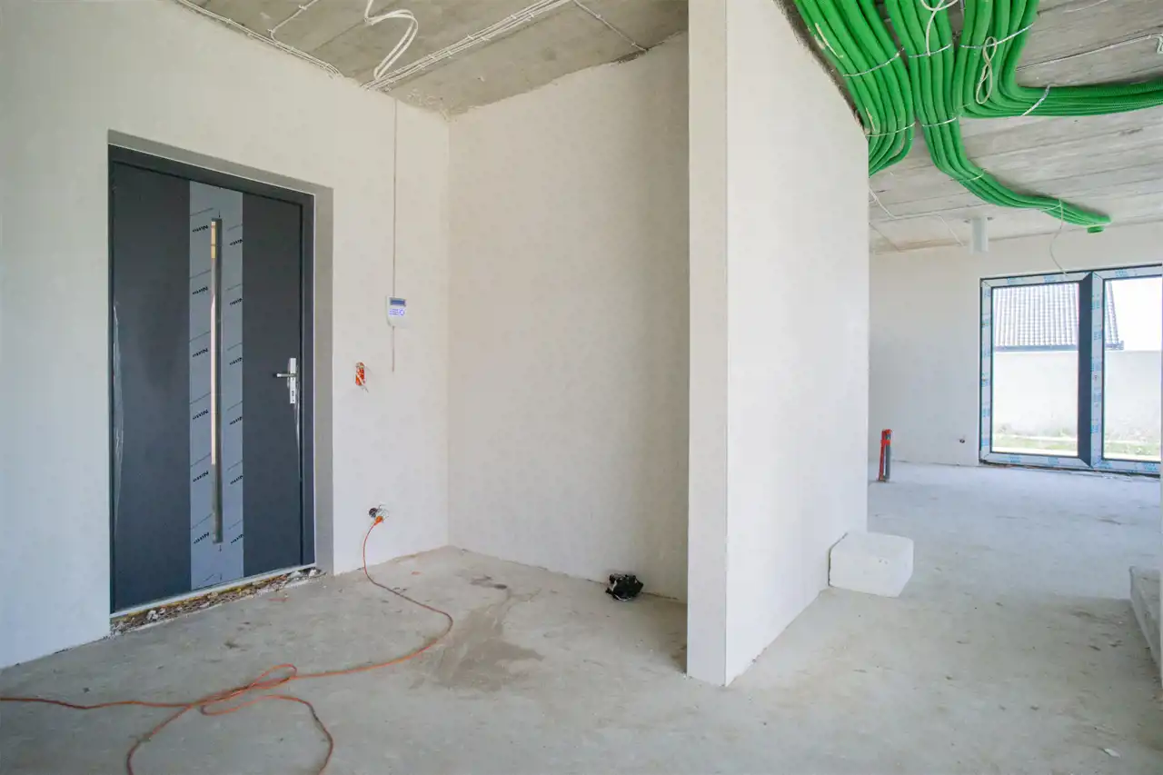 Nieruchomość jest ogrodzona, podjazd utwardzony. Dom sprzedawany jest w stanie do wykończenia, dzięki czemu przyszły właściciel będzie mógł go zaaranżować i dostosować do swoich potrzeb. Poza standardowym wykończeniem budynek został wyposażony w: