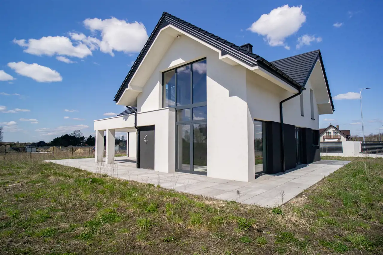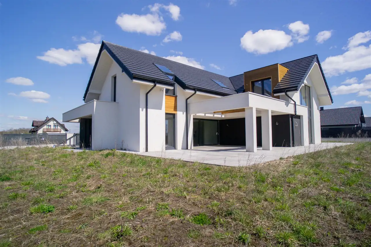 Nowoczesny dom w malowniczej, zapewniającej ciszę okolicy, z jednoczesnym bardzo dobrym skomunikowaniem z miastem i trasami wylotowymi będzie idealną propozycją dla osób poszukujących domu o współczesnej architekturze i pełnym spokoju otoczeniu.