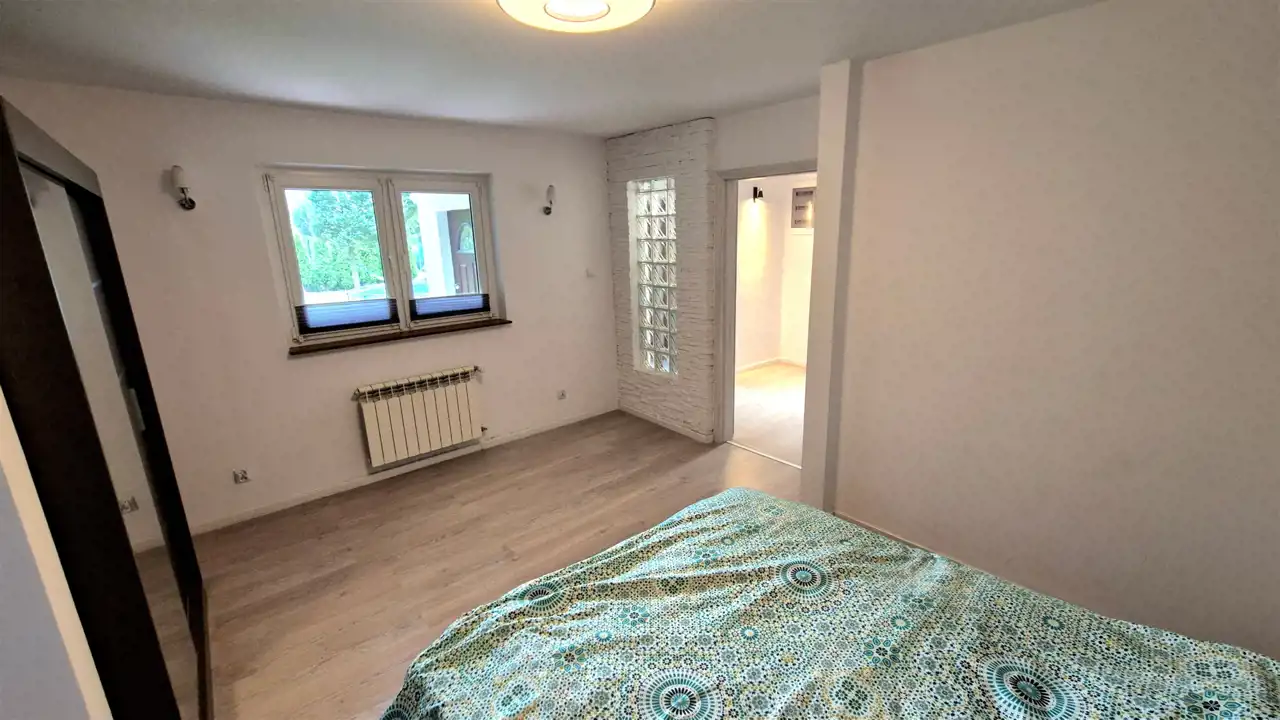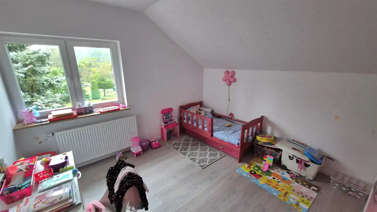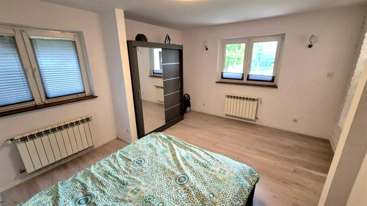 Oferujemy Państwu do sprzedaży właśnie oddany do użytkowania po rozbudowie dom jednorodzinny w miejscowości Czyżeminek, 10 km od marketu Carrefour przy ul. Rzgowskiej w Łodzi. Dom położony jest na ładnej prostokątnej działce o powierzchni 1000 m2. Na parterze budynku o pow. 77,7 m 2 znajduje się duży salon z aneksem kuchennym, sypialnia, przedpokój, łazienka, pralnia oraz kotłownia. Natomiast na piętrze - poddaszu użytkowym znajdują się dwie mniejsze sypialnie oraz przedpokój. Jest też jeszcze duże, ocieplone pomieszczenie przygotowane do wykończenia wg potrzeb. Dom posiada aktualne Świadectwo charakterystyki energetycznej poświadczające spełnianie wymogów obecnych norm budowlanych w zakresie izolacyjności budynków. Wygodny dojazd asfaltową, gładką drogą z pewnością jest atutem tej położonej na wsi, ale blisko Łodzi, nieruchomości szczególnie atrakcyjnej dla osób pracujących w dzielnicy Górna.