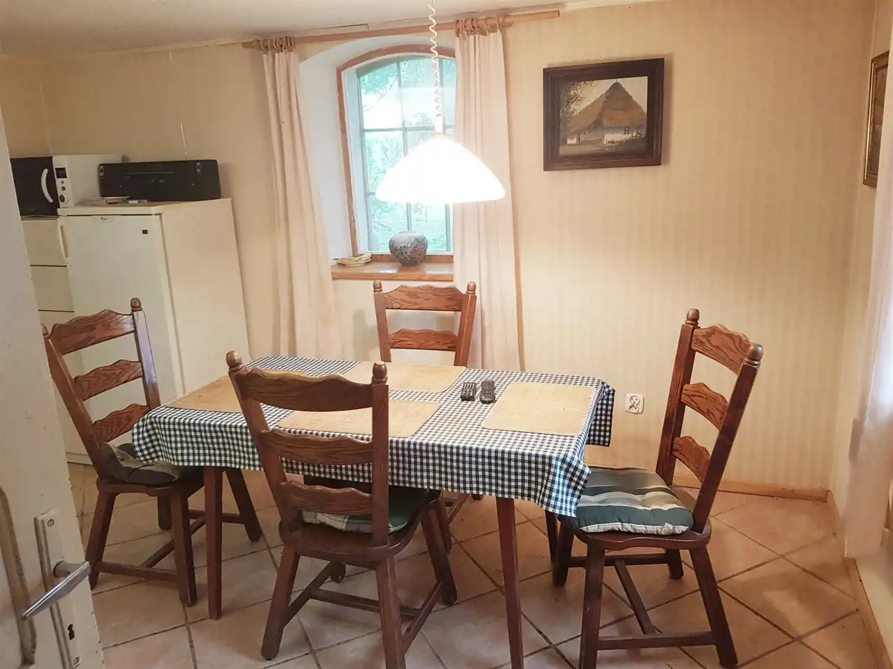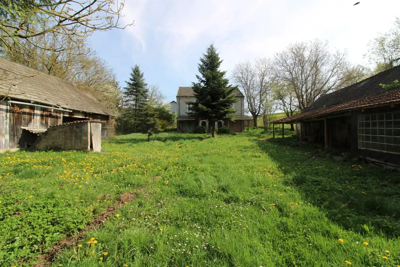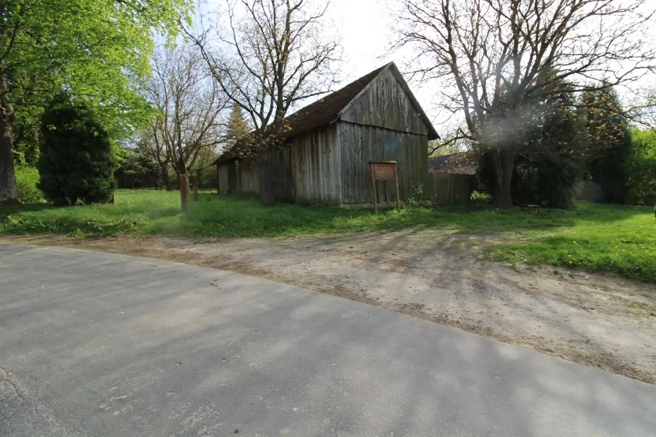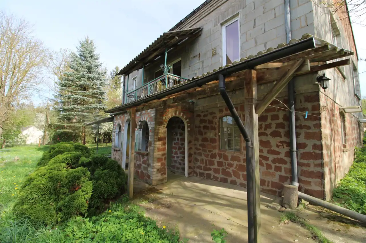 Nieruchomość składa się z domu murowanego 1-piętrowego, gospodarczego budynku murowanego oraz dużej drewnianej stodoły, całość usytuowana na lekko nachylonej działce, co sprawia, że mieszkańcy mają piękny widok na okolicę.