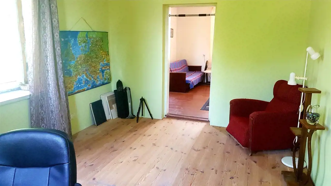 Parter domu stanowi kuchnia, łazienka, pomieszczenie warsztatowe oraz duży garaż, na piętrze są usytuowane 4 pokoje oraz pomieszczenie na drugą łazienkę, z tarasu otwartego w kierunku północnym rozpościera się widok na posesję oraz okolicę. Wysokie poddasze użytkowe do zagospodarowania.